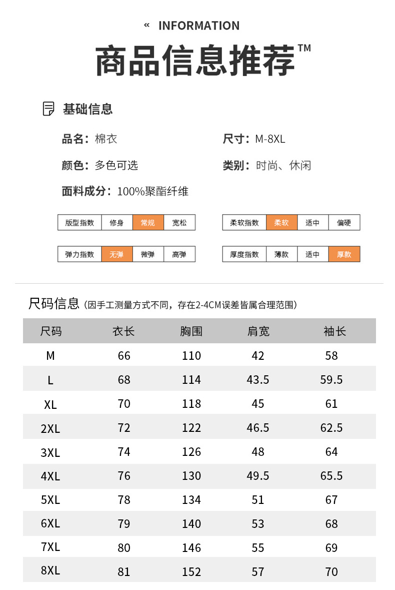2024年の新型M-8XLの大きいサイズの男性のコートの冬のカジュアルな青年のかっこいい韓国版の上着は厚い綿の服を着ます。