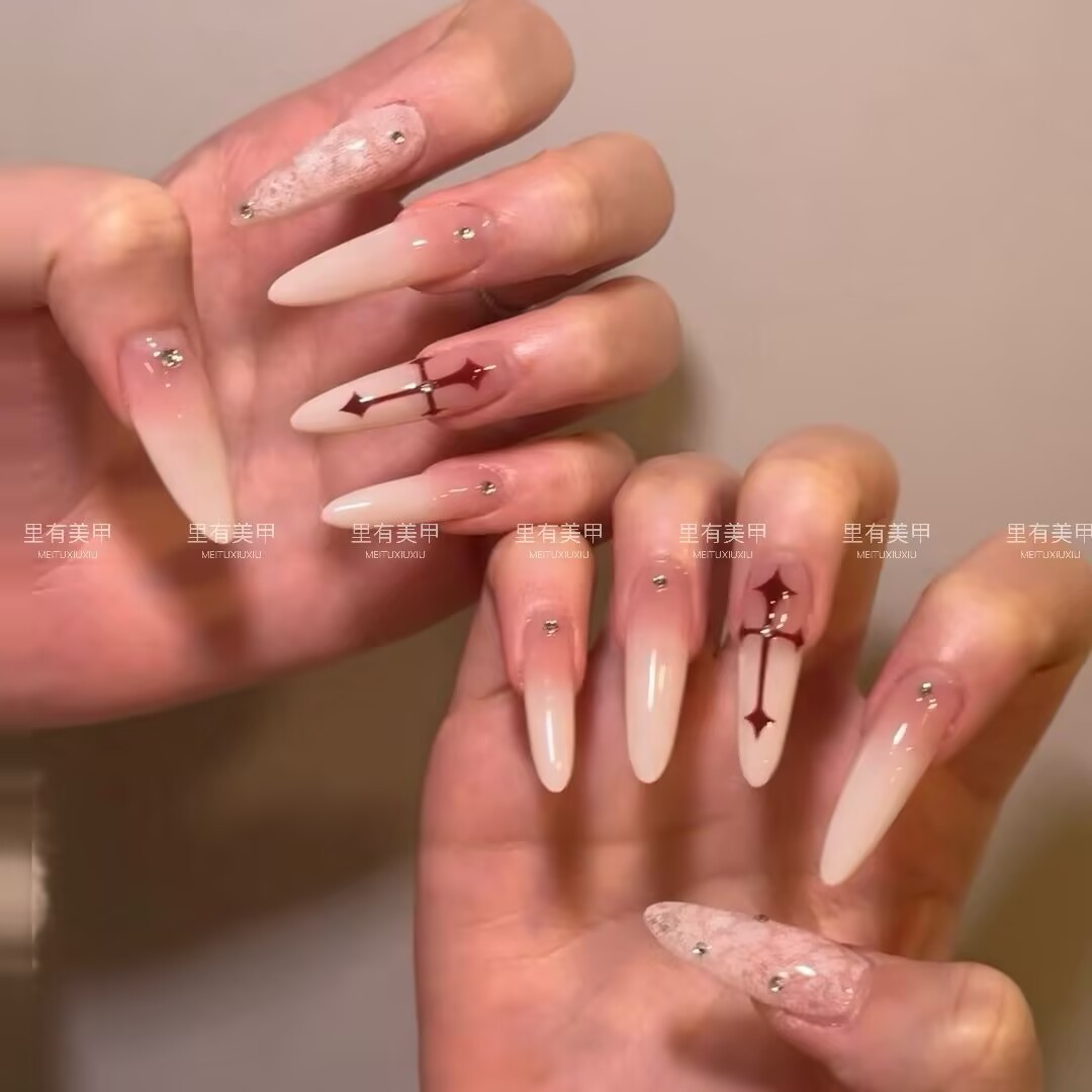 里有纯手工穿戴甲美甲批发404粉蓝克罗心高级感甜酷辣女孩穿戴甲