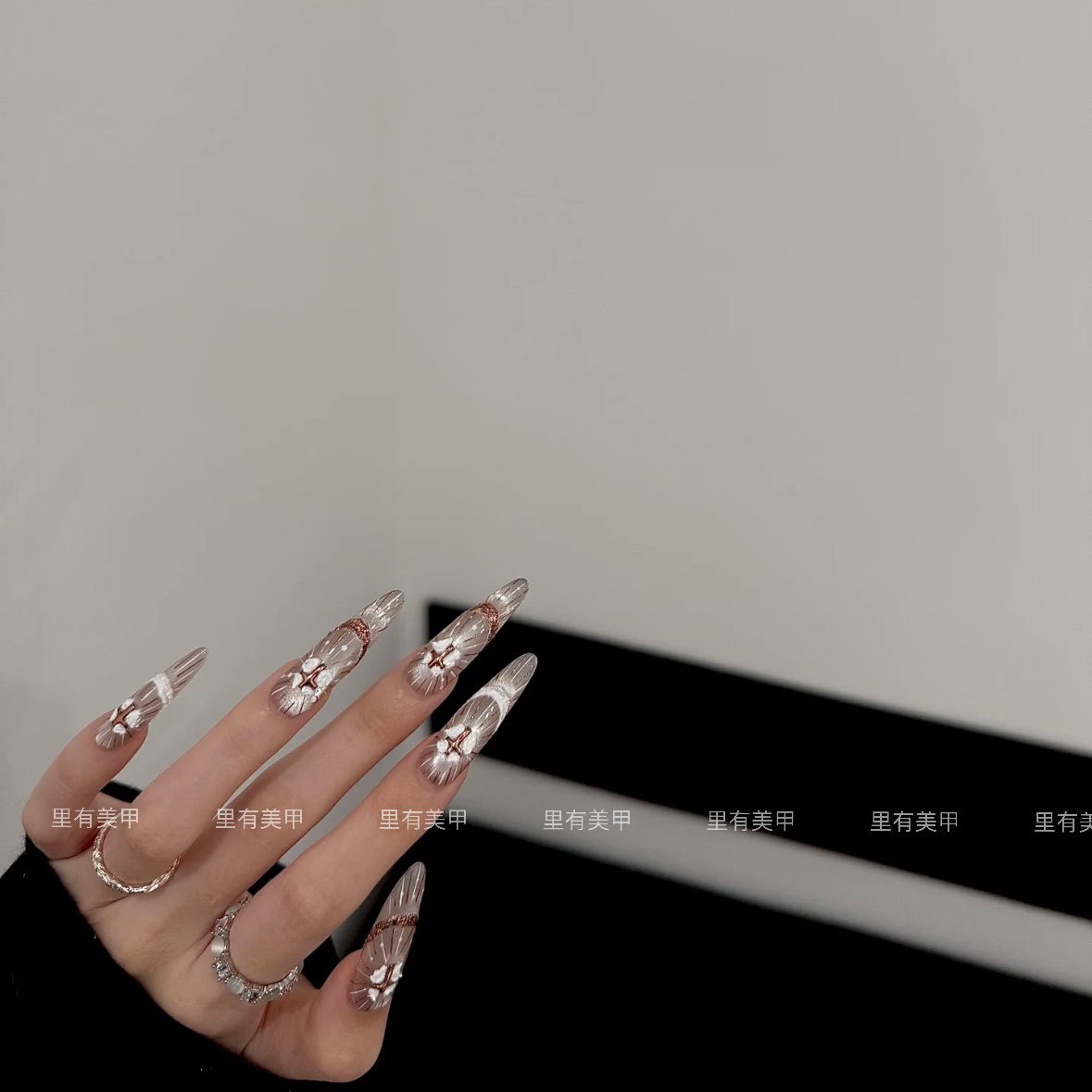里有纯手工穿戴甲美甲批发394裸色渐变蕾丝甲甜美酷辣风穿戴甲