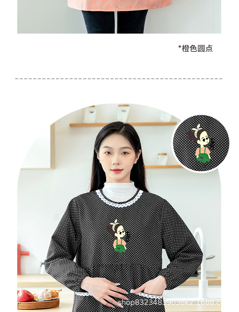長袖防水エプロン家庭用キッチン料理女性カバー大人ファッション防油ファスナー作業服薄いタイプ