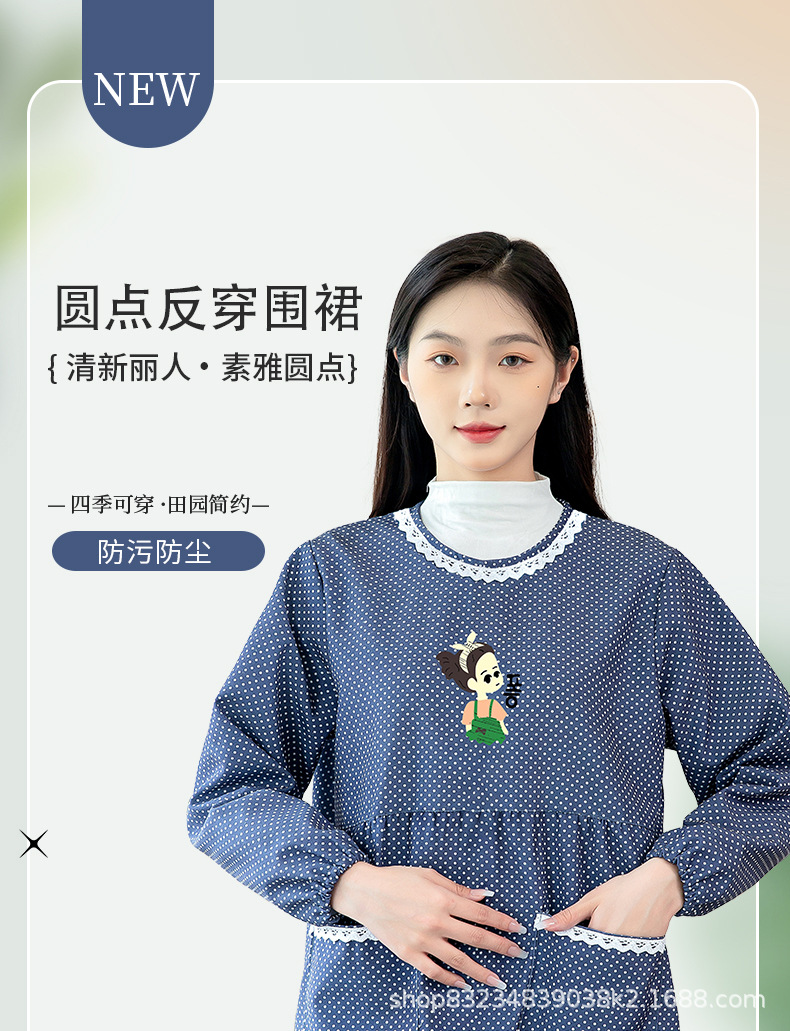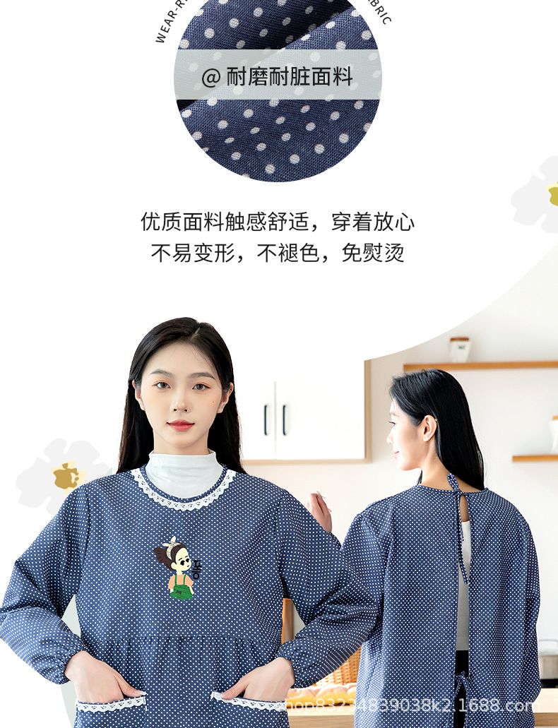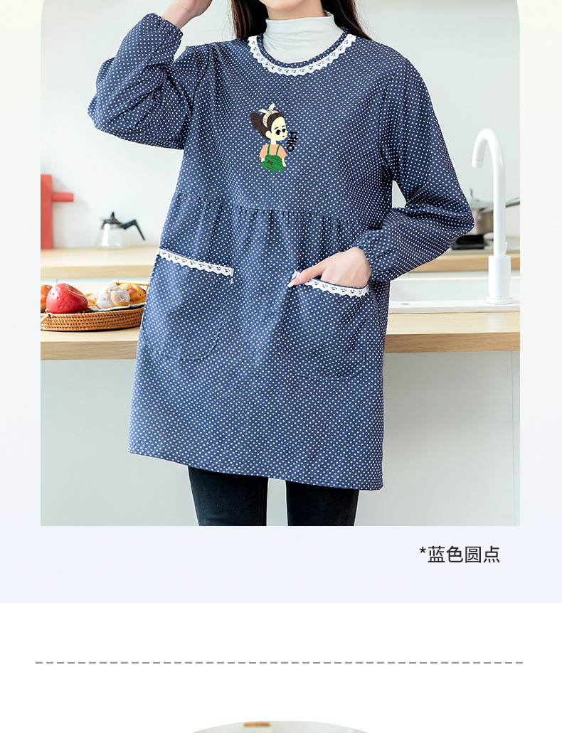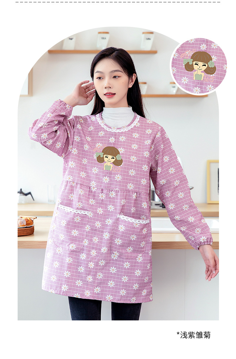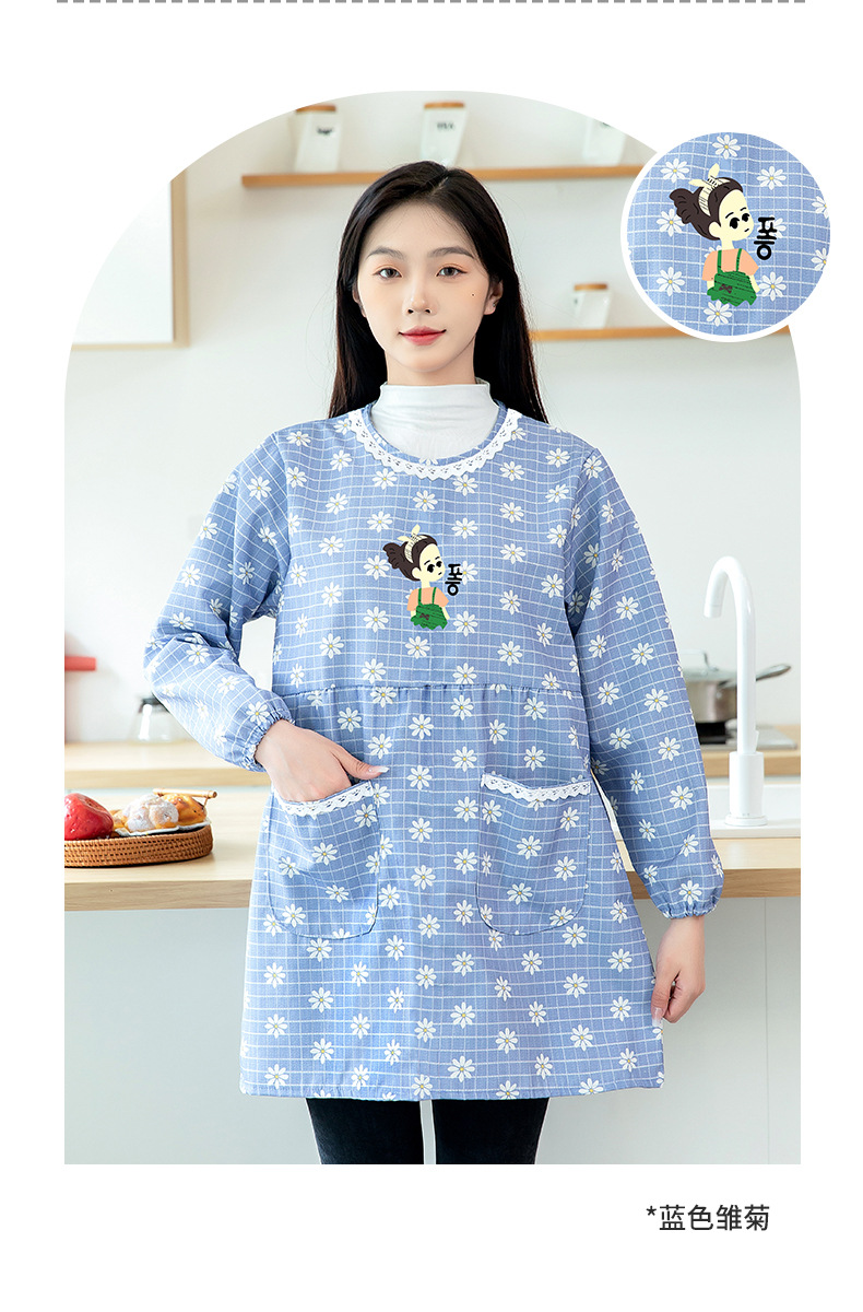 防水長袖女性エプロンカバー大人家庭用キッチンファッション料理防油丸襟上着作業服新型