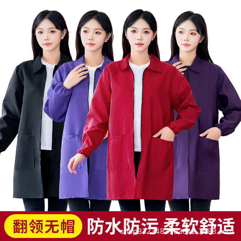 ファッション帽子なしエプロンジッパーブラウス大人女性家庭用キッチン防水防油レディース防汚長袖作業服
