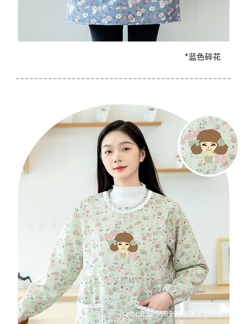 長袖エプロンとベルベットのブラウス大人家庭用キッチン防水防油ファッション女性が作業服を厚くした冬の新型