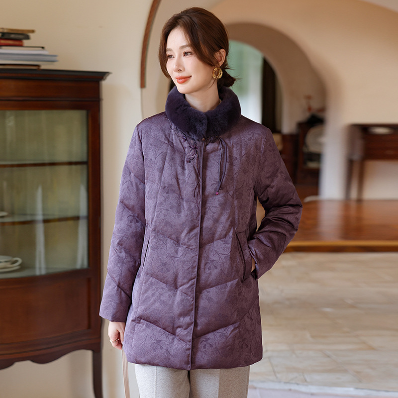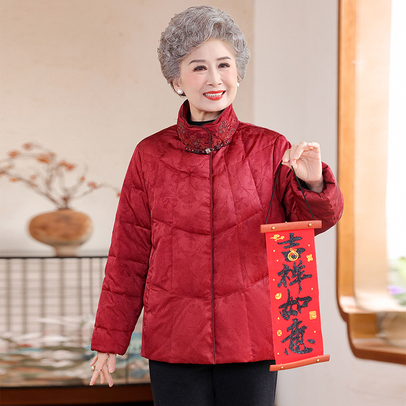 2024母ダウンジャケット上着冬中高年母服ダウンジャケット90白鴨パイル刺繍中国風