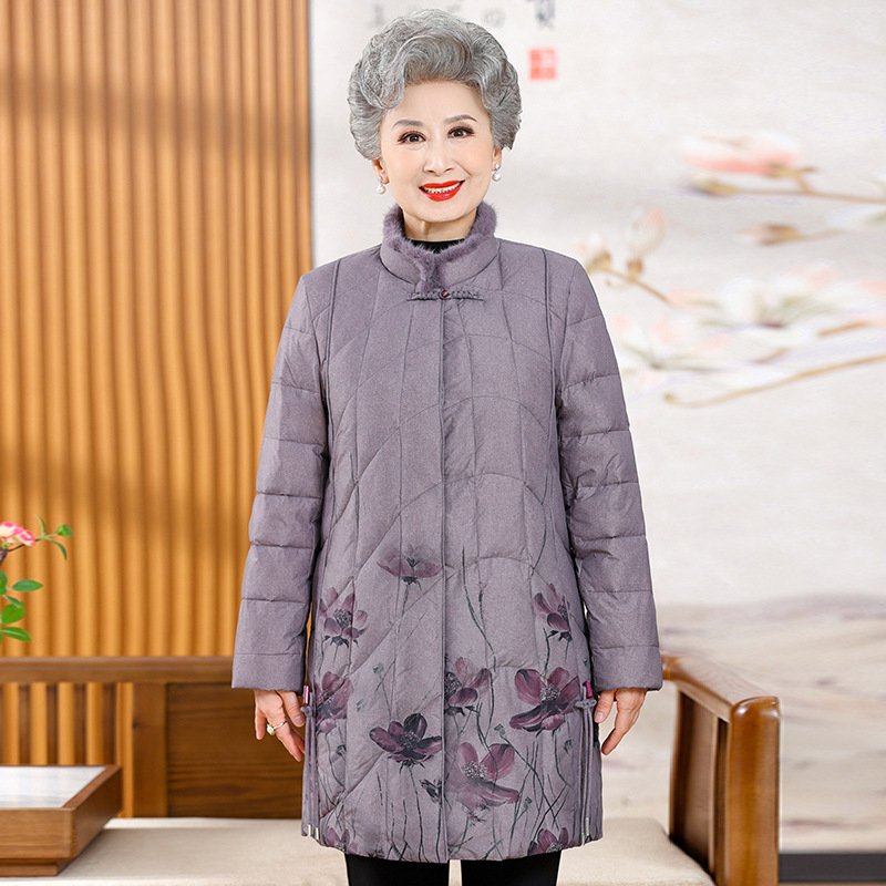 老年人羽绒服女款中长款奶奶冬装加厚大码70岁老太太冬季新年外套