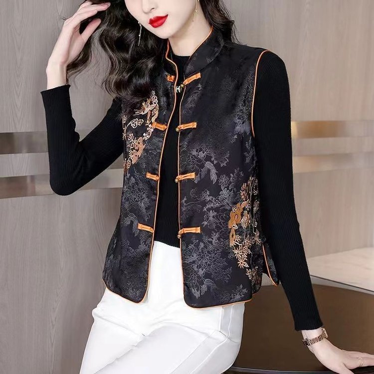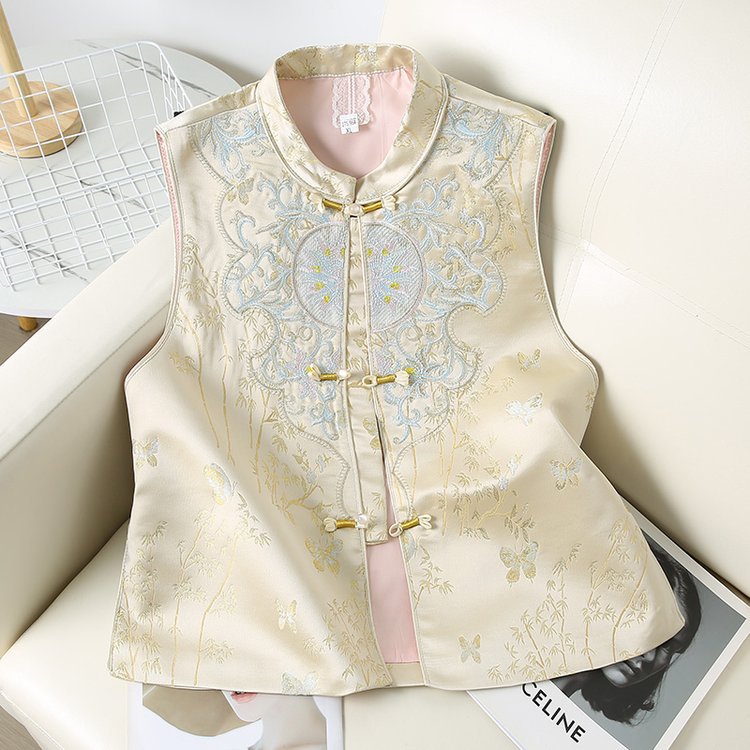 代発2025春の新商品中国風重工刺繍立襟馬甲気質百合洋気カン肩