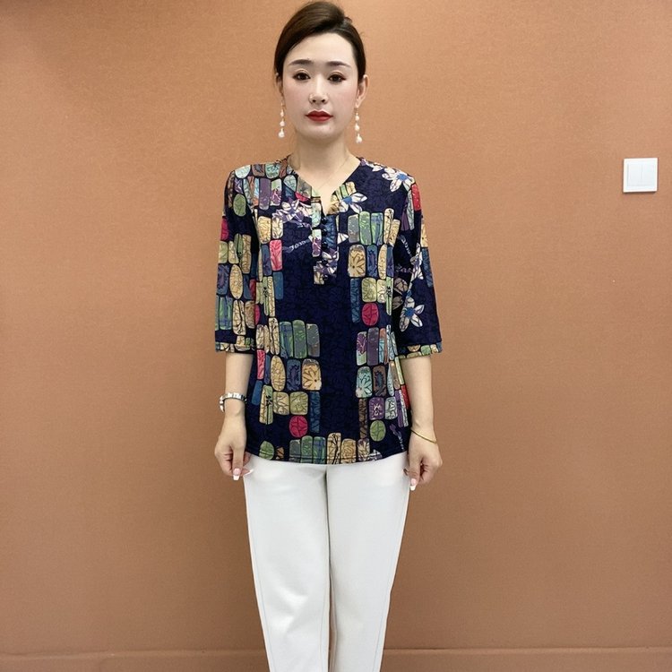 中高年半袖tシャツファッションゆるい女装七分袖夏のブラウス