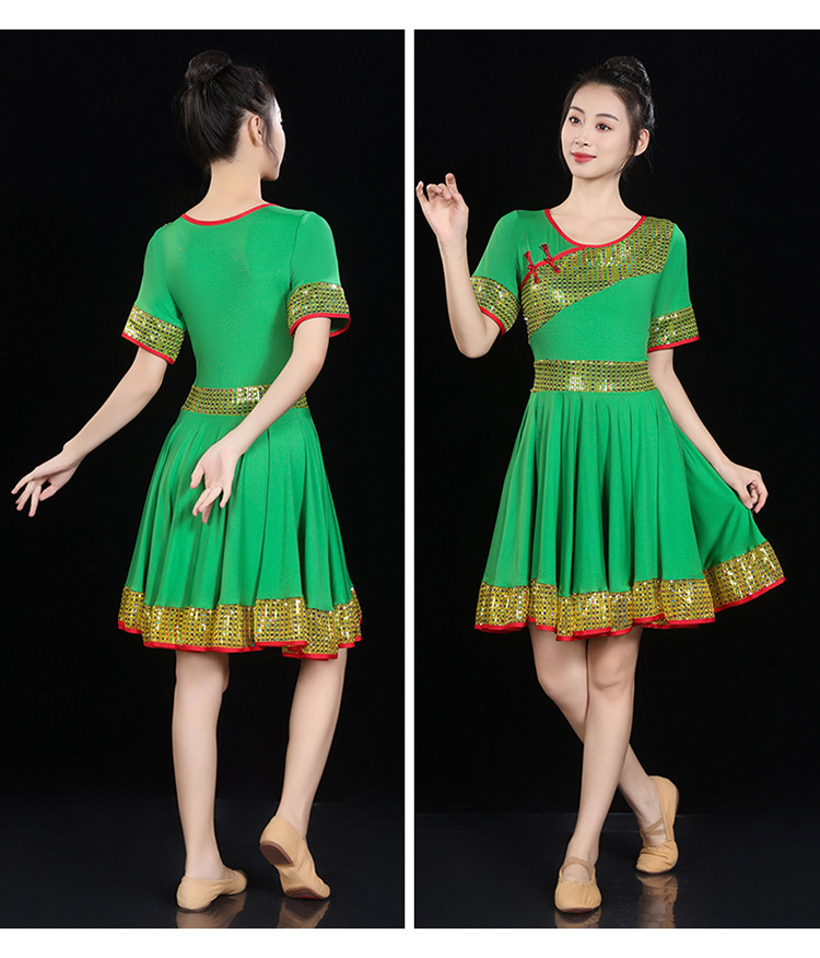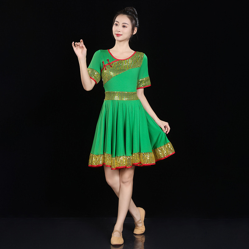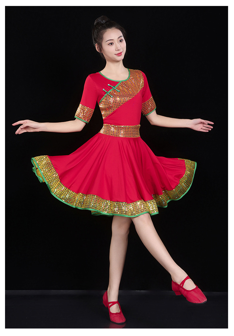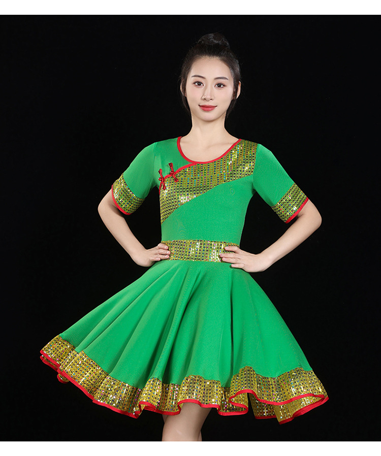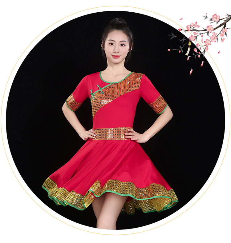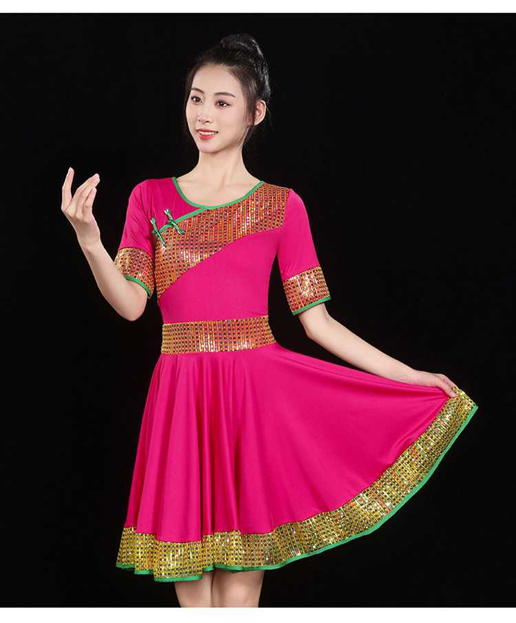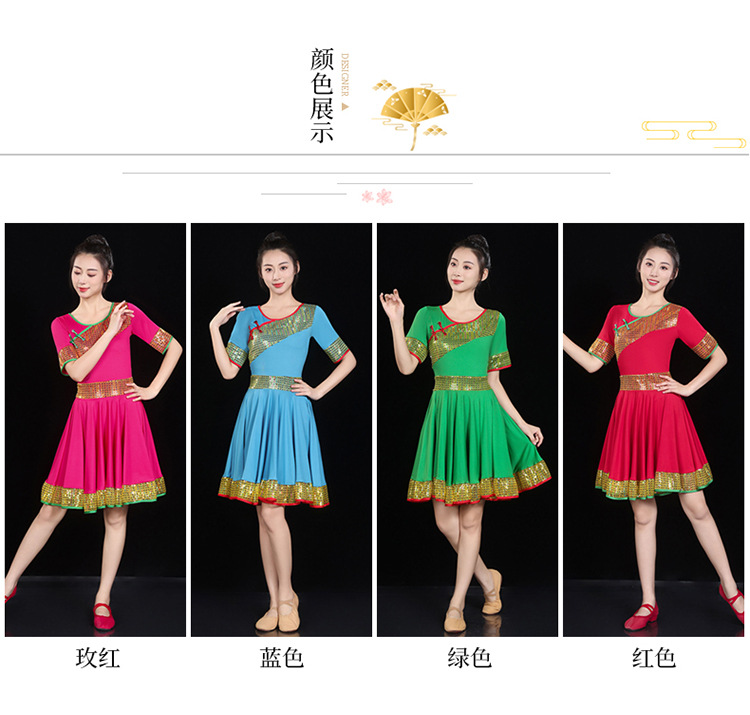 愛唯舞広場舞服新作セット丸首半袖大振り子スカート女性成人ダンス衣装1124