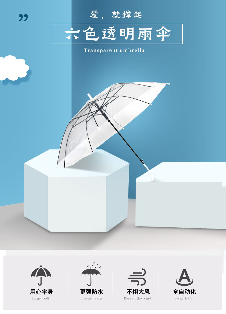 カラー透明傘ストレートロッド自動傘長柄傘傘傘ロゴメーカー卸売り