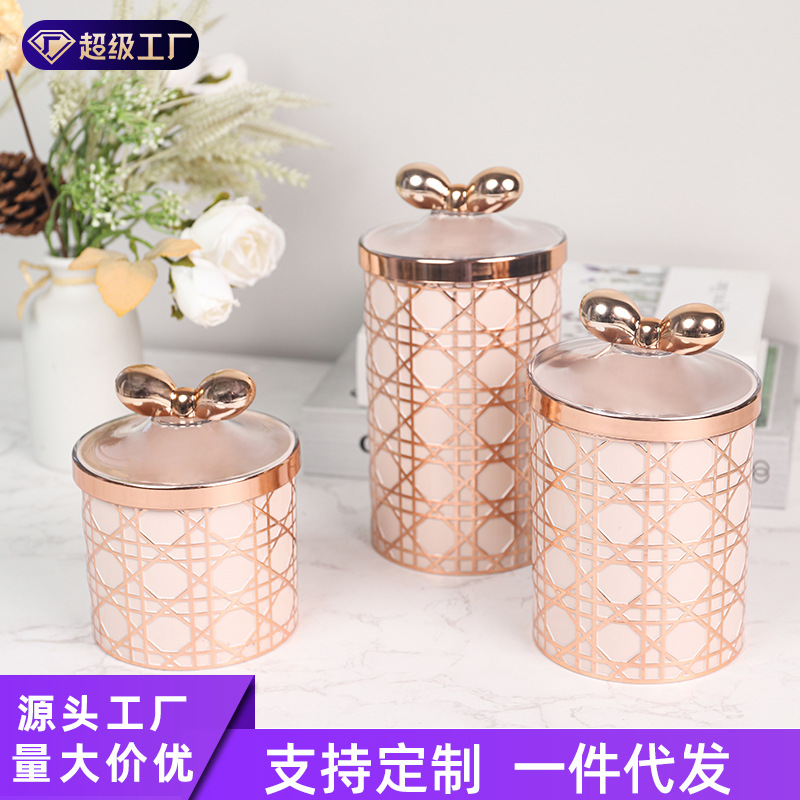 欧式玫瑰金轻奢风收纳创意糖果罐摆件家居桌面塑料罐子烫印工艺