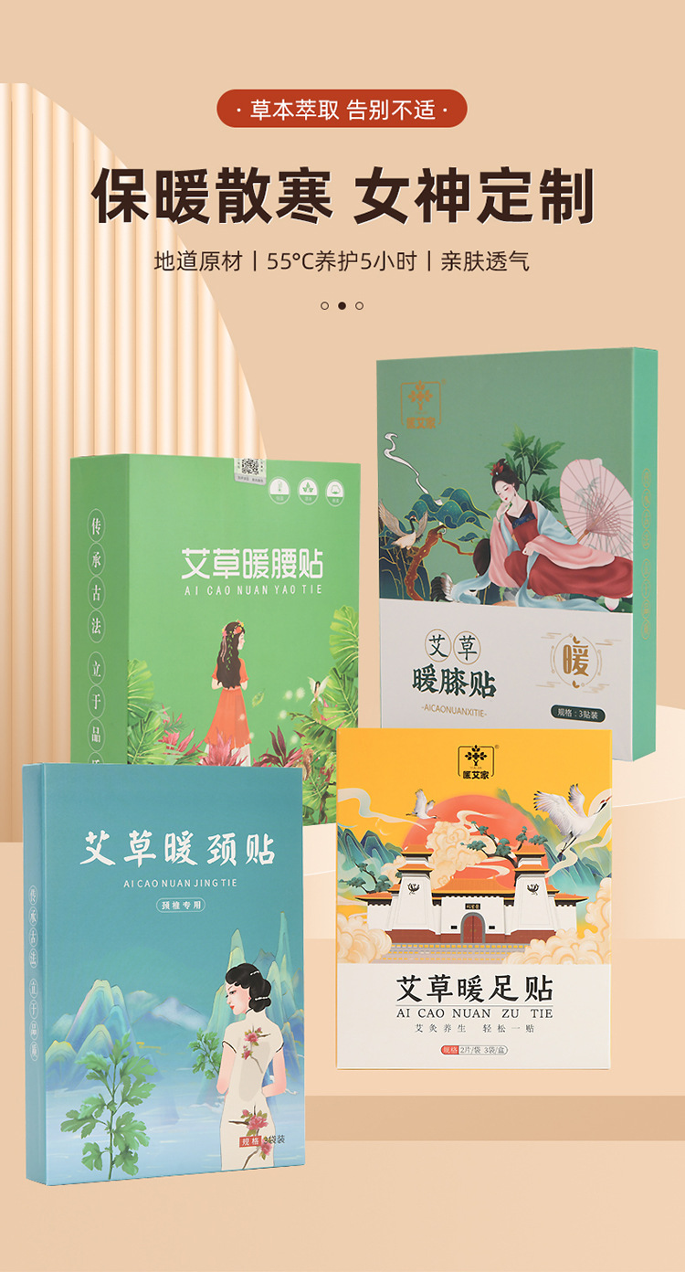裸は灸を貼ってメーカーの発熱の艾草を貼って首を温めます。