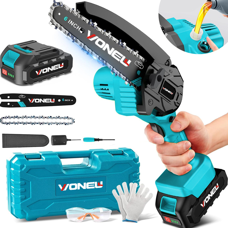 クロスボーダー 6inch リチウム電気のこぎり充電式チェーンソー家庭用伐採小型ハンドヘルド薪のこぎりミニ電動木製ツール