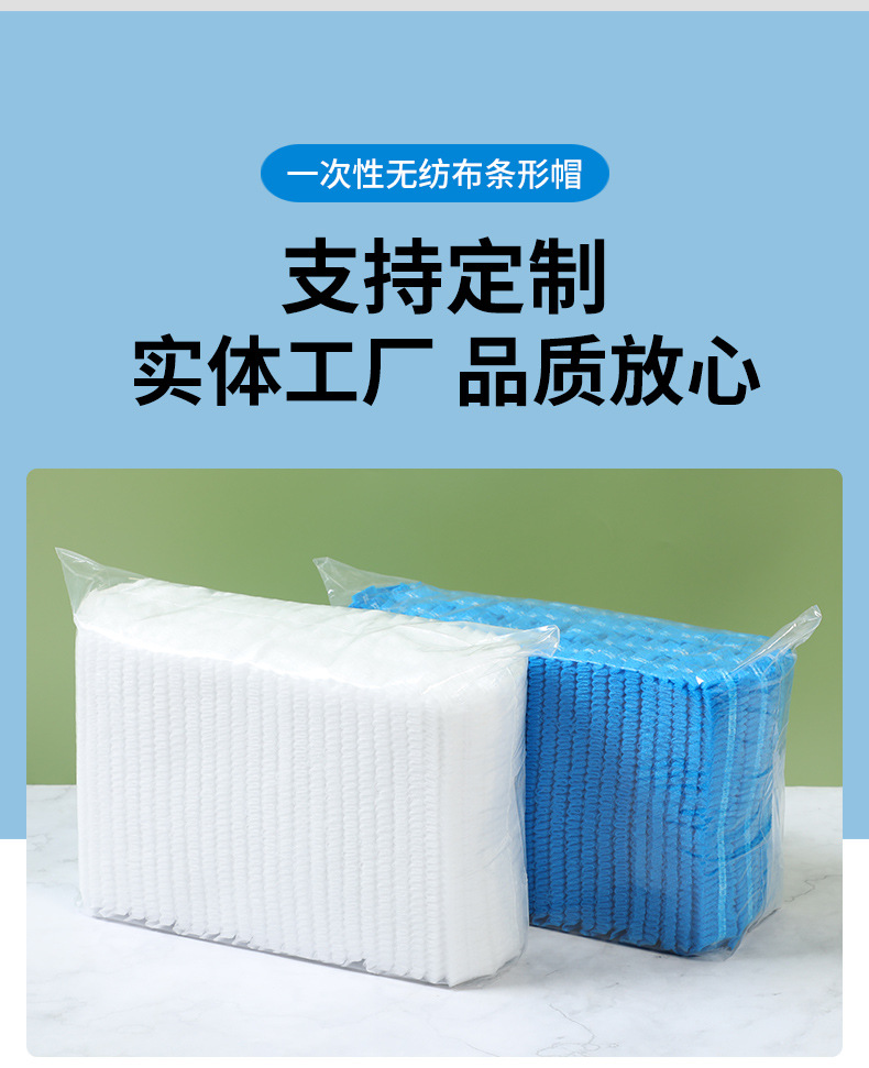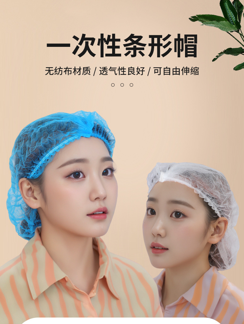卸売使い捨て帽子不織布ストリップ帽子ケータリングミルクティーショップ食品工場ベーキング食堂ヘアネット帽子ヘッドギア