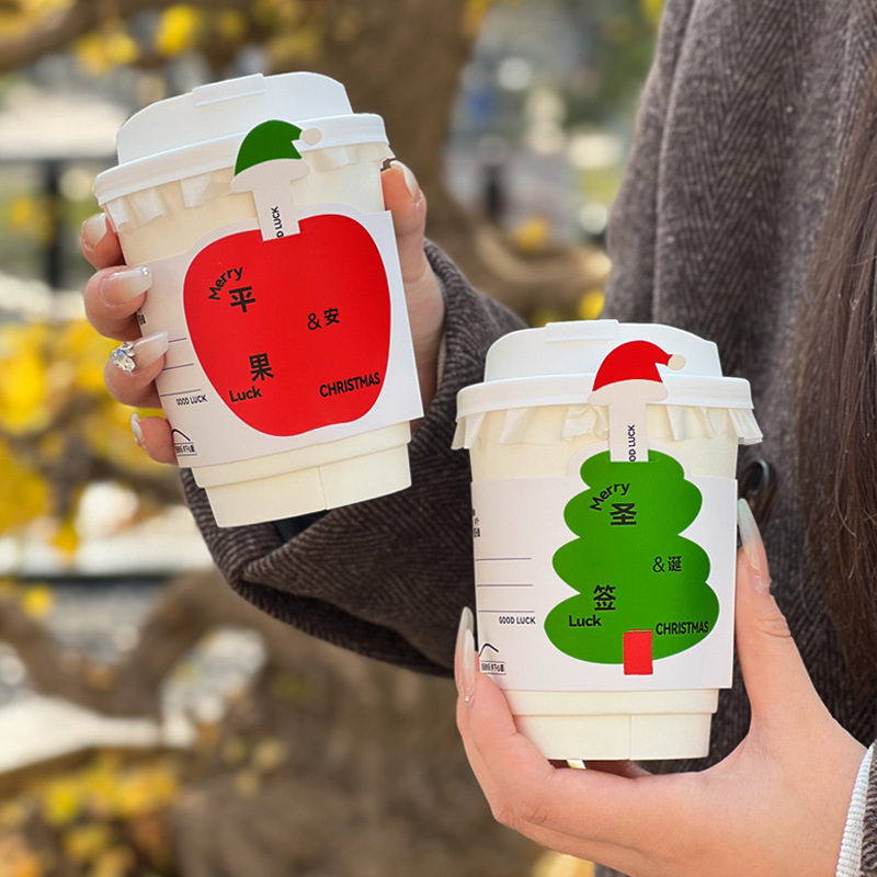 クリスマスカップセットミルクティーカップホワイトカードカップセットクリエイティブ使い捨てコーヒーカップ紙カバー保護カバー商用卸売り