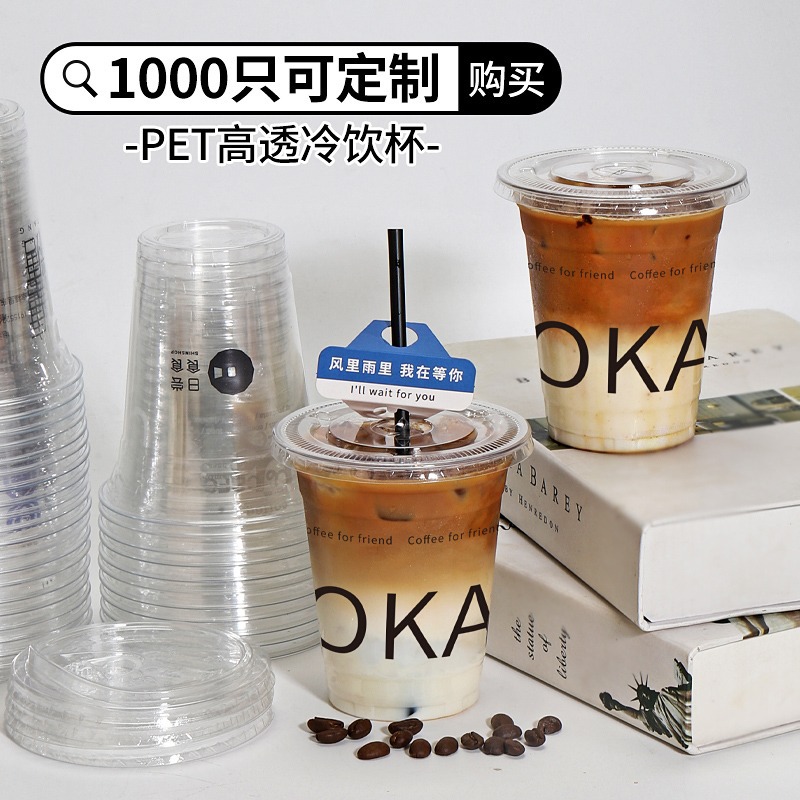 使い捨てコーヒーカップ透明ミルクティーカップ冷たい飲み物家庭用プラスチックカップ包装販売カップ蓋付き商用