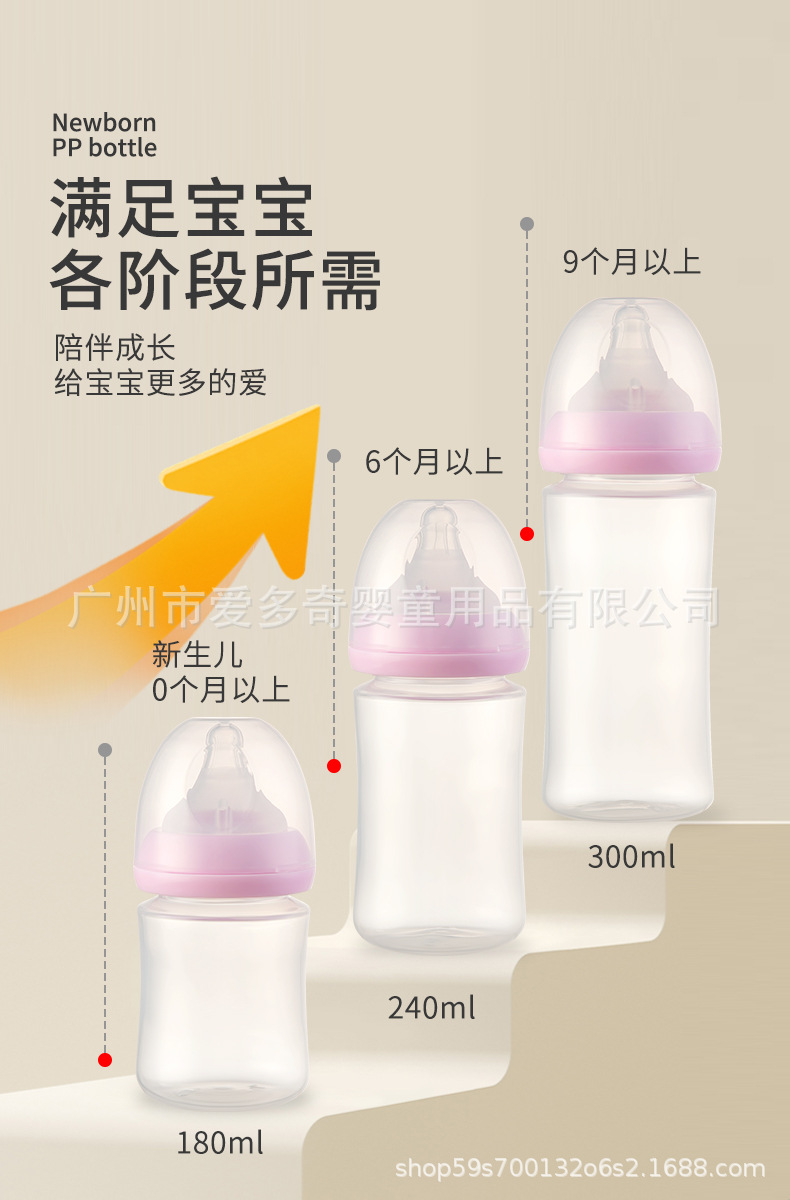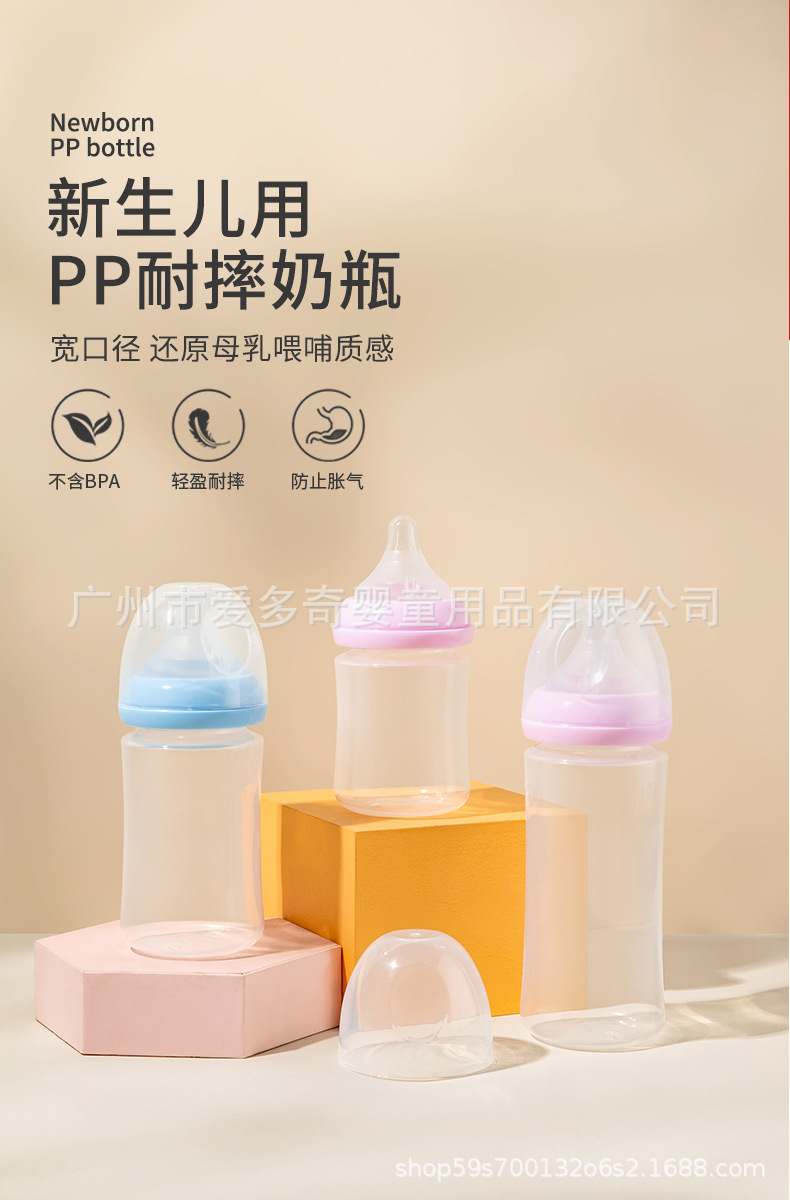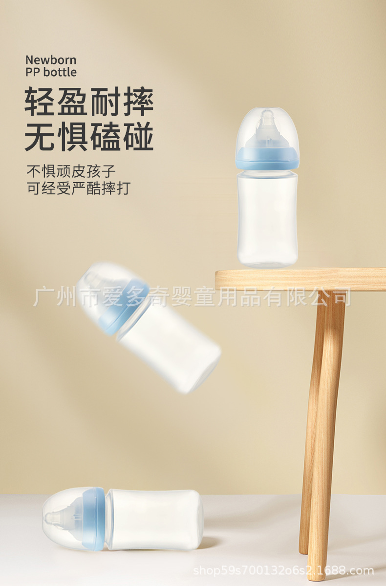 宽口径婴儿奶瓶新生宝宝防呛防胀气PP奶瓶仿母乳奶瓶厂家母婴批发