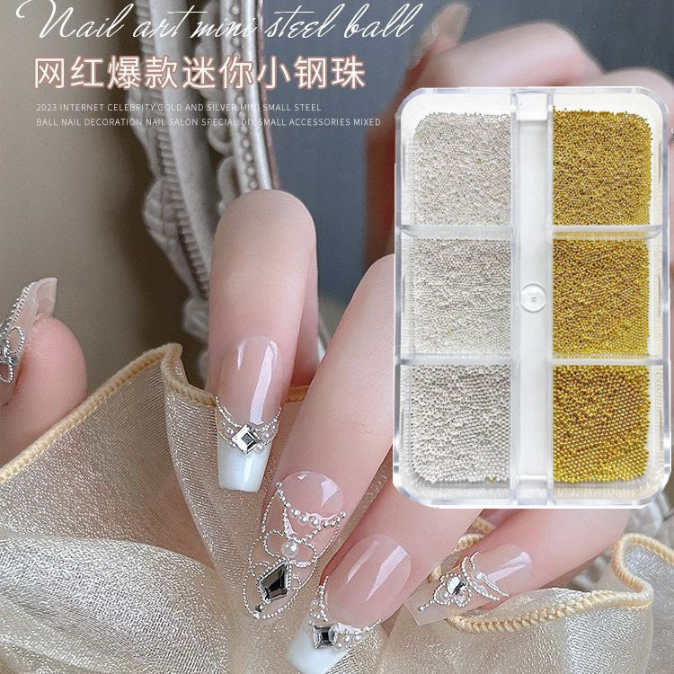 ネイルラメ金と銀のミニスチールビーズのミックスサイズの超微細金属アクセサリーの新しいボールチェーンの爪