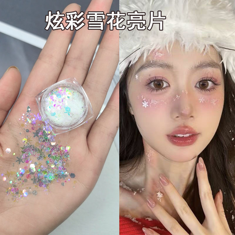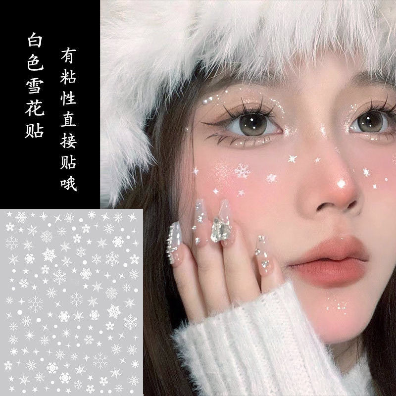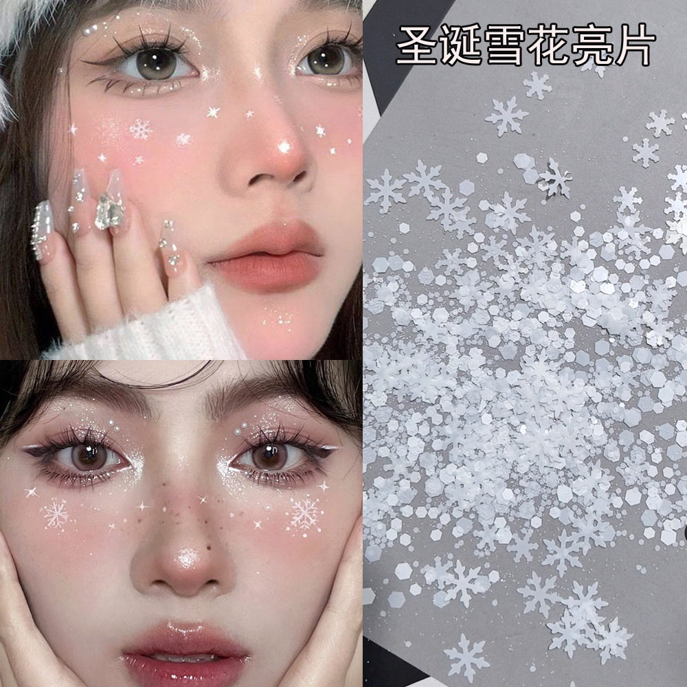 白色圣诞节雪花圣诞贴片贴脸美甲亮片DIY装饰流沙闪片脸部装饰