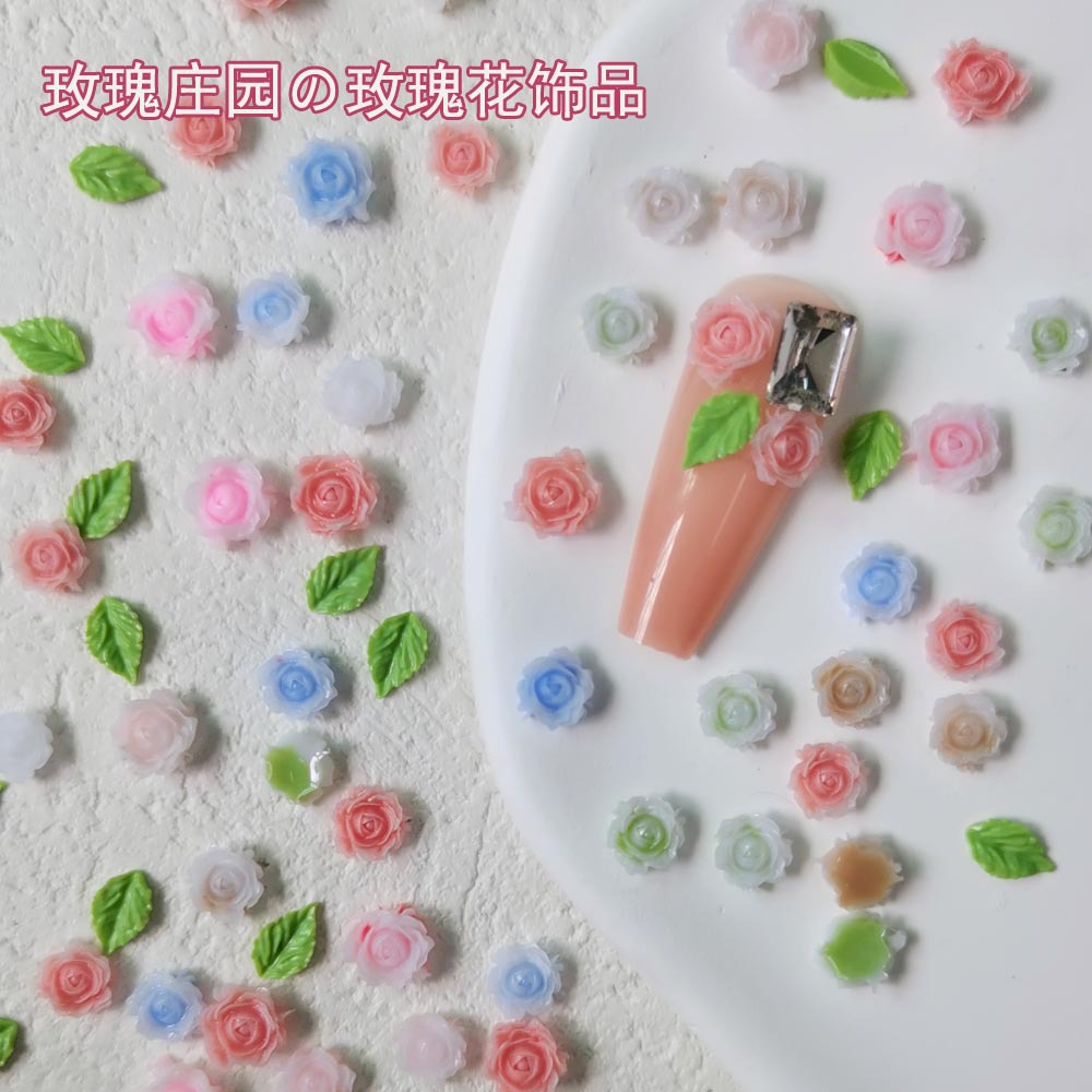 50個の月の季節のバラのネイルアクセサリーの大きさを混ぜて、レトロな樹脂を染めてツバキの花の爪ドリルを彫刻します。