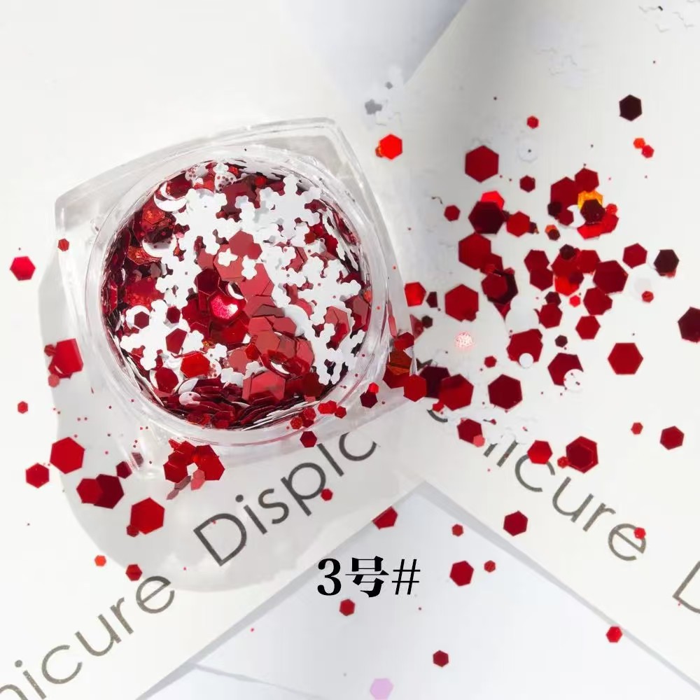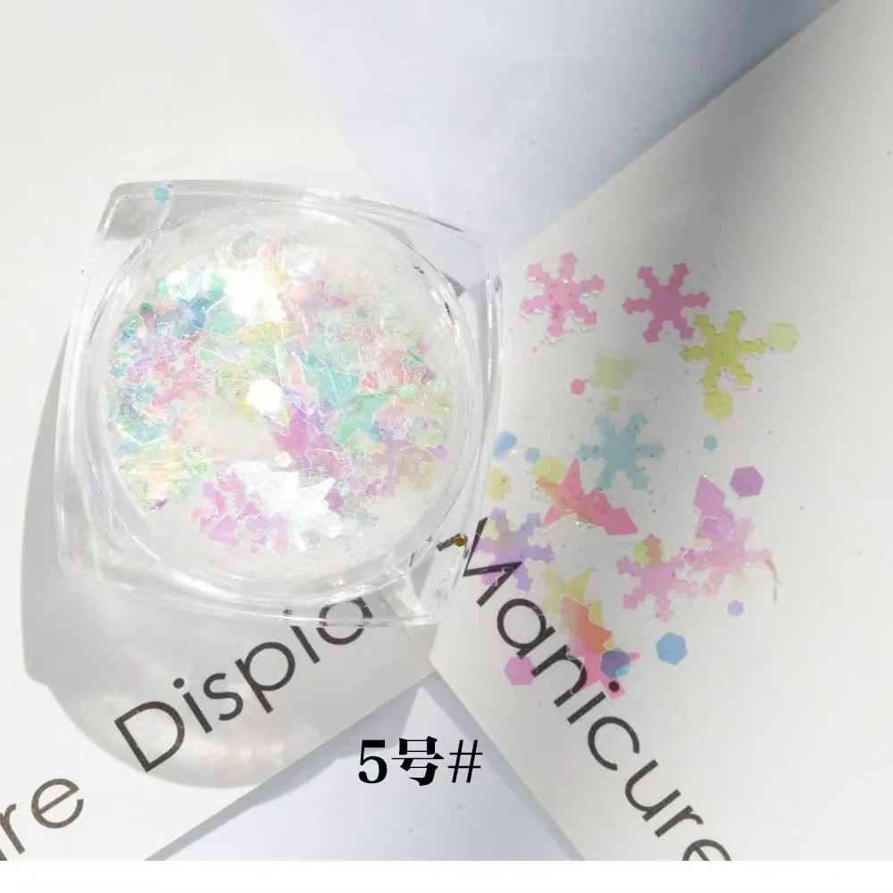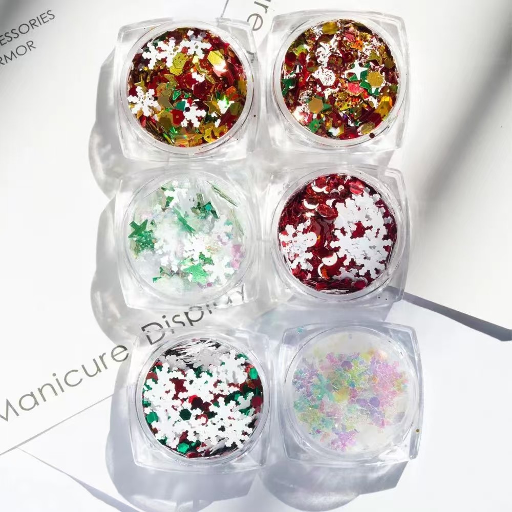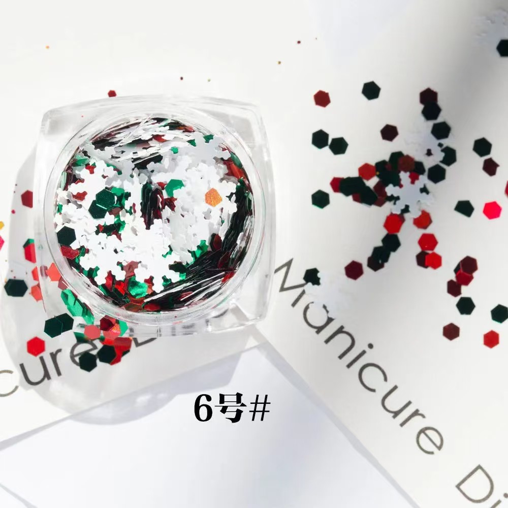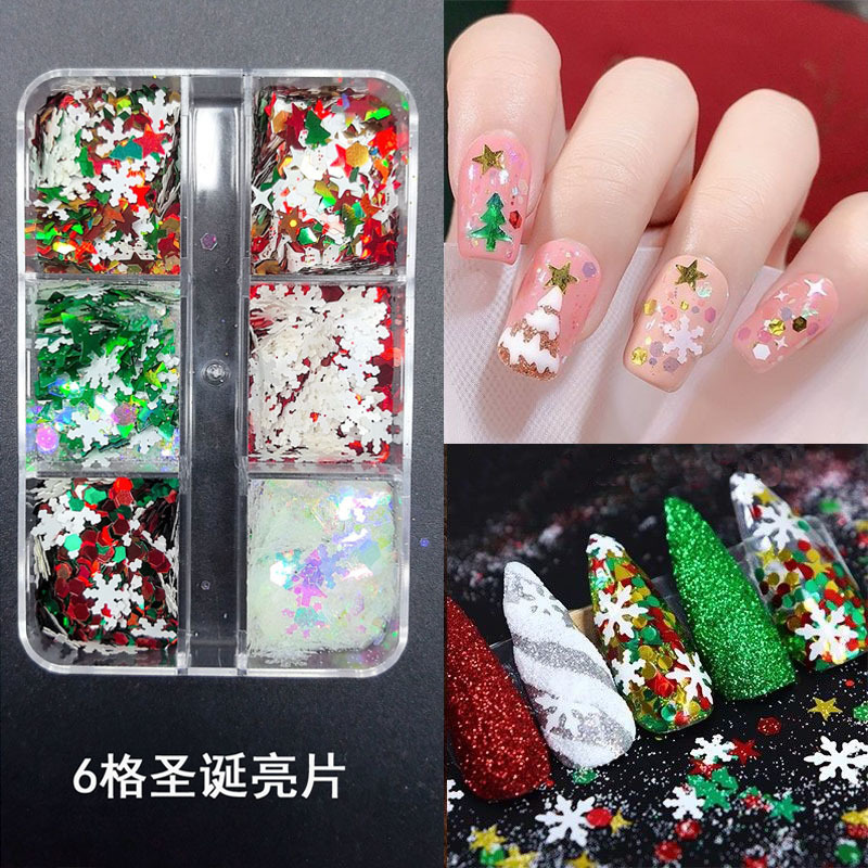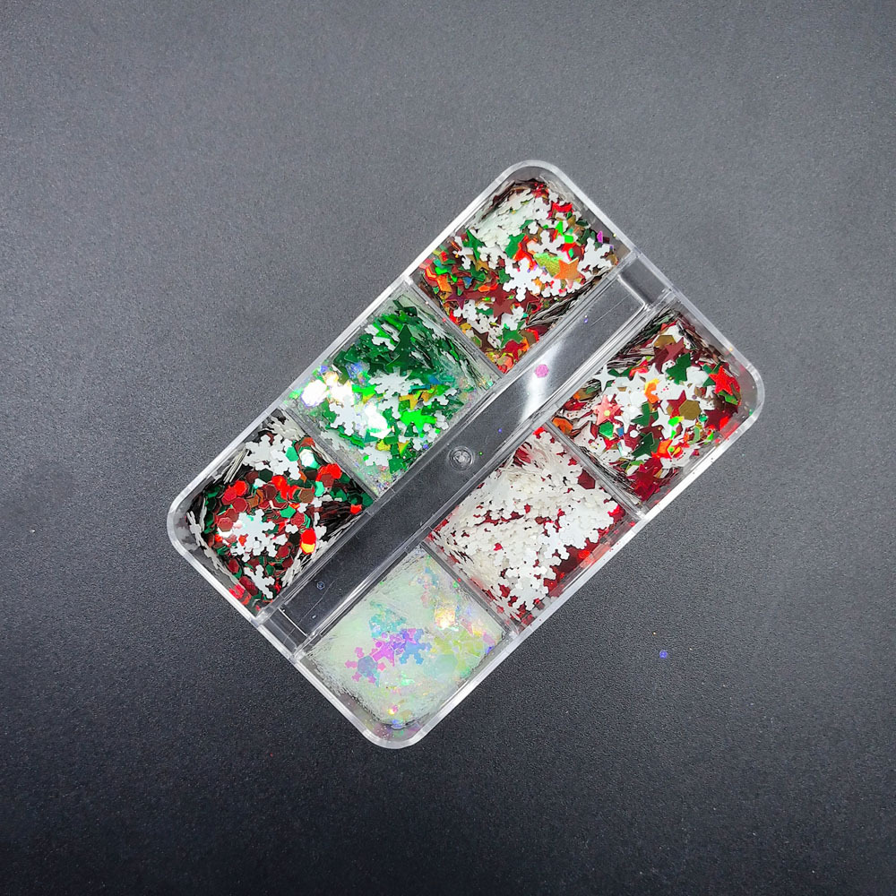 小さな6グリッド箱入りクリスマスネイルアートスパンコール秋と冬の白い雪の結晶ネイルアートスパンコールオーナメントクリスマススパンコールヨーロッパとアメリカ
