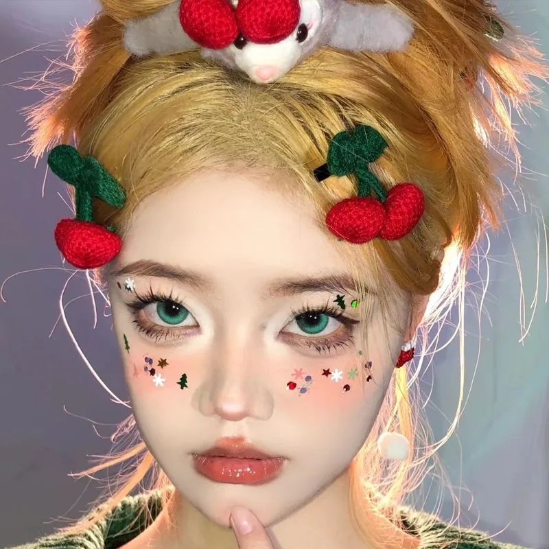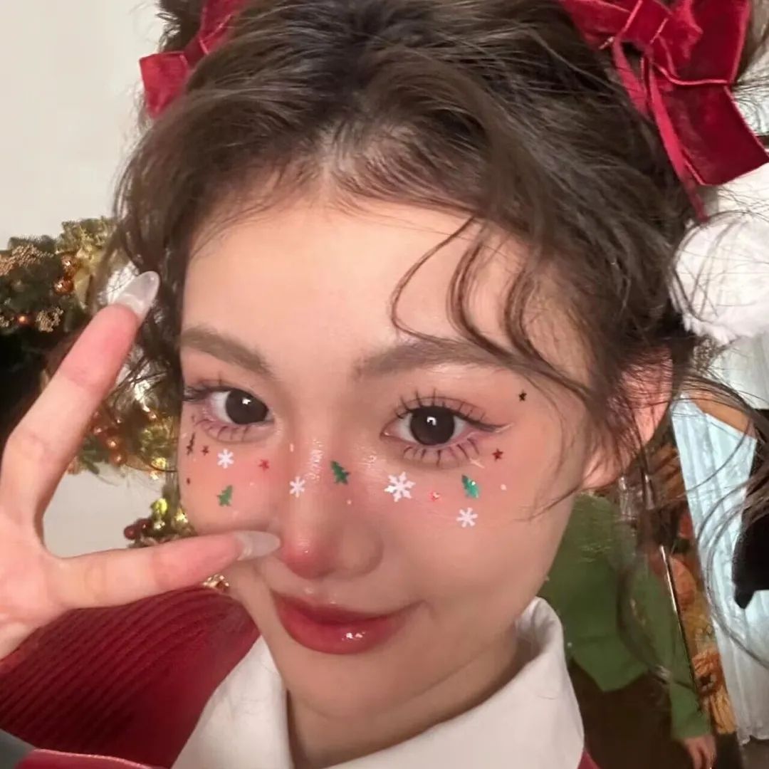 クリスマスの化粧はクリスマスツリーのネイルアートのキラキラの化粧の顔の白い雪の舞台の装飾品のフラッシュを貼ります。