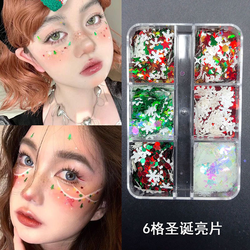 クリスマスのスパンコールは顔の雪のきらめきの粉のクリスマスの化粧のネイルの顔の装飾品のクリスマスツリーのショーを貼ります。