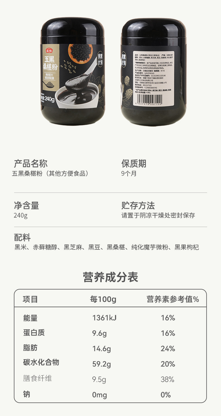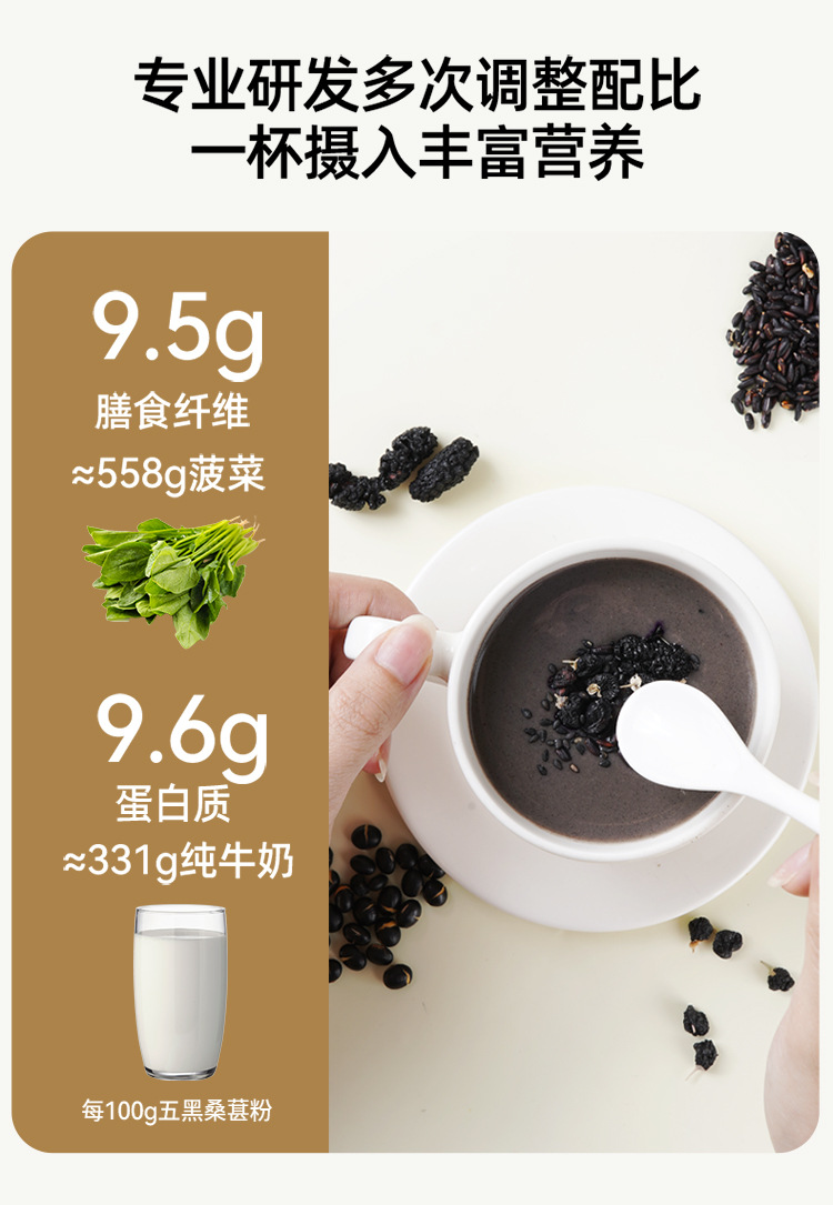 黒ごまペースト、ごま、黒豆、桑の実、黒クコ、黒米粉、食事代替粉末、朝食ドリンク、五黒粉、五穀