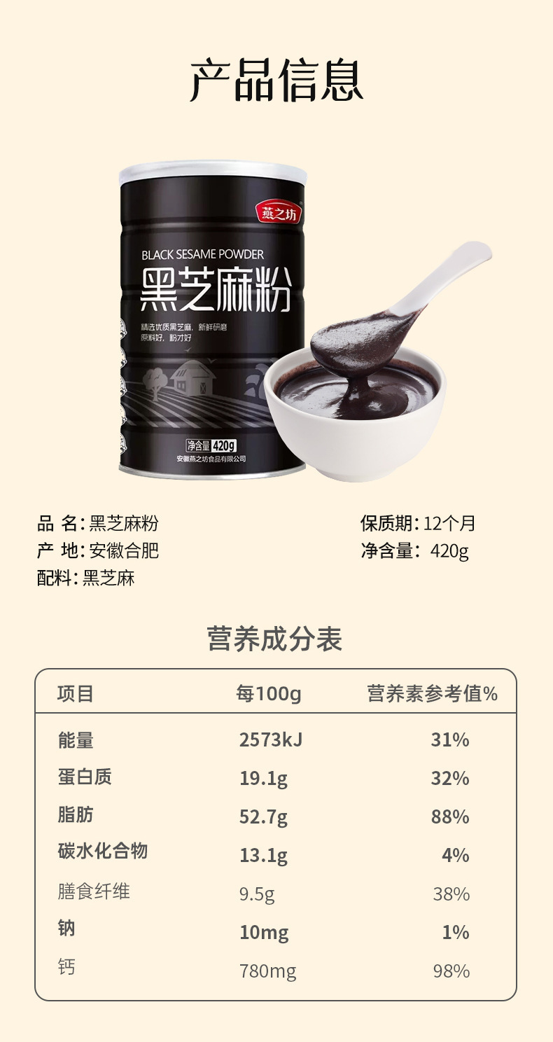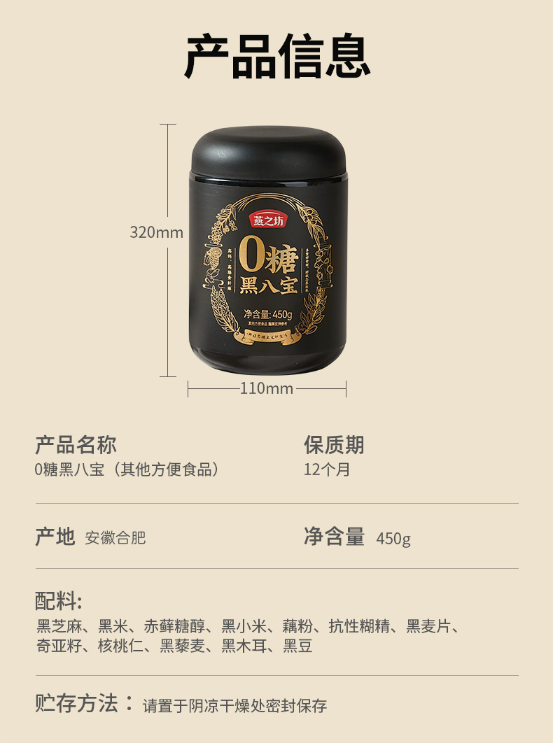 燕之坊0糖代食粉黒八宝黒ゴマペースト黒豆粉零糖代食黒果クコ栄養朝食