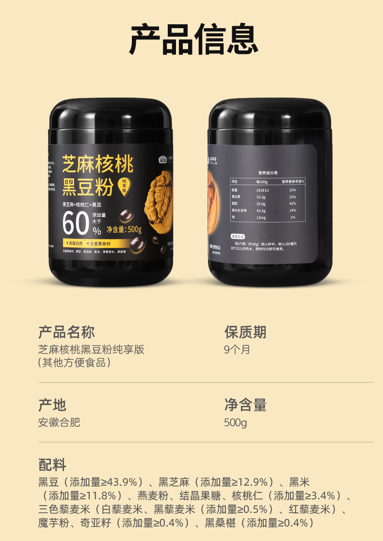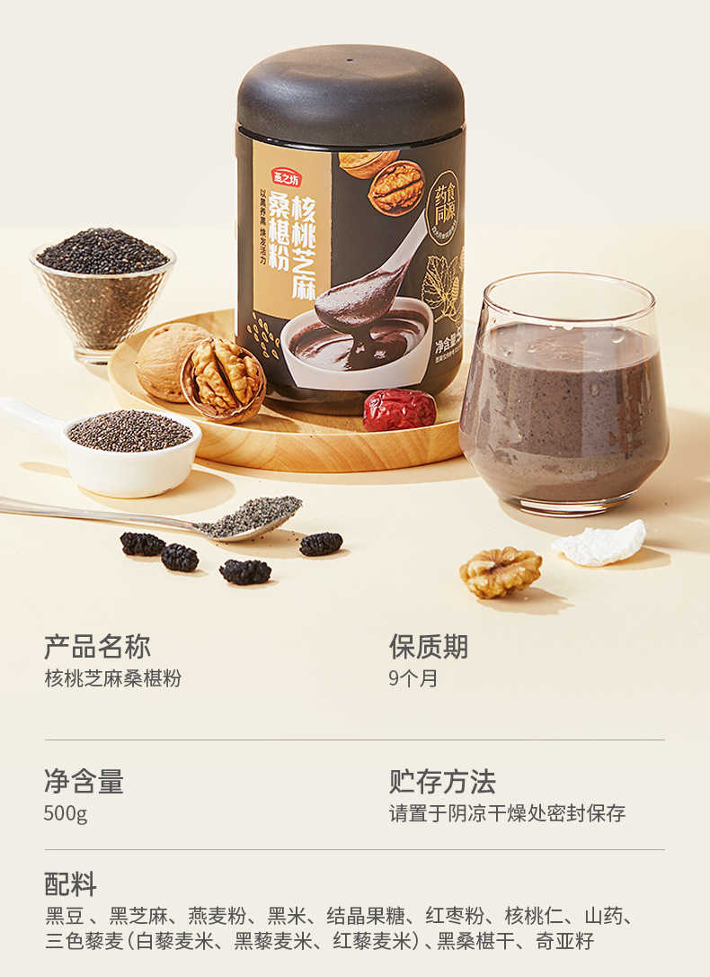 南京同仁堂黑芝麻核桃桑葚粉600g罐装黑豆养生早餐代餐黑芝麻糊