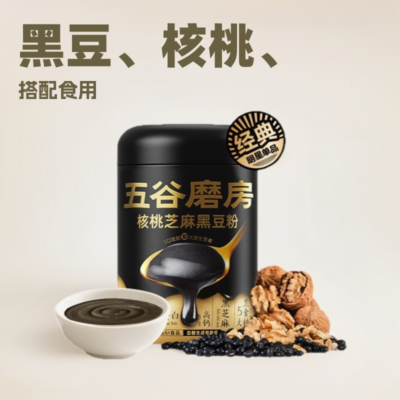 五谷磨房黑芝麻糊核桃芝麻黑豆粉五黑粉早代餐粉黑芝麻核桃桑葚粉