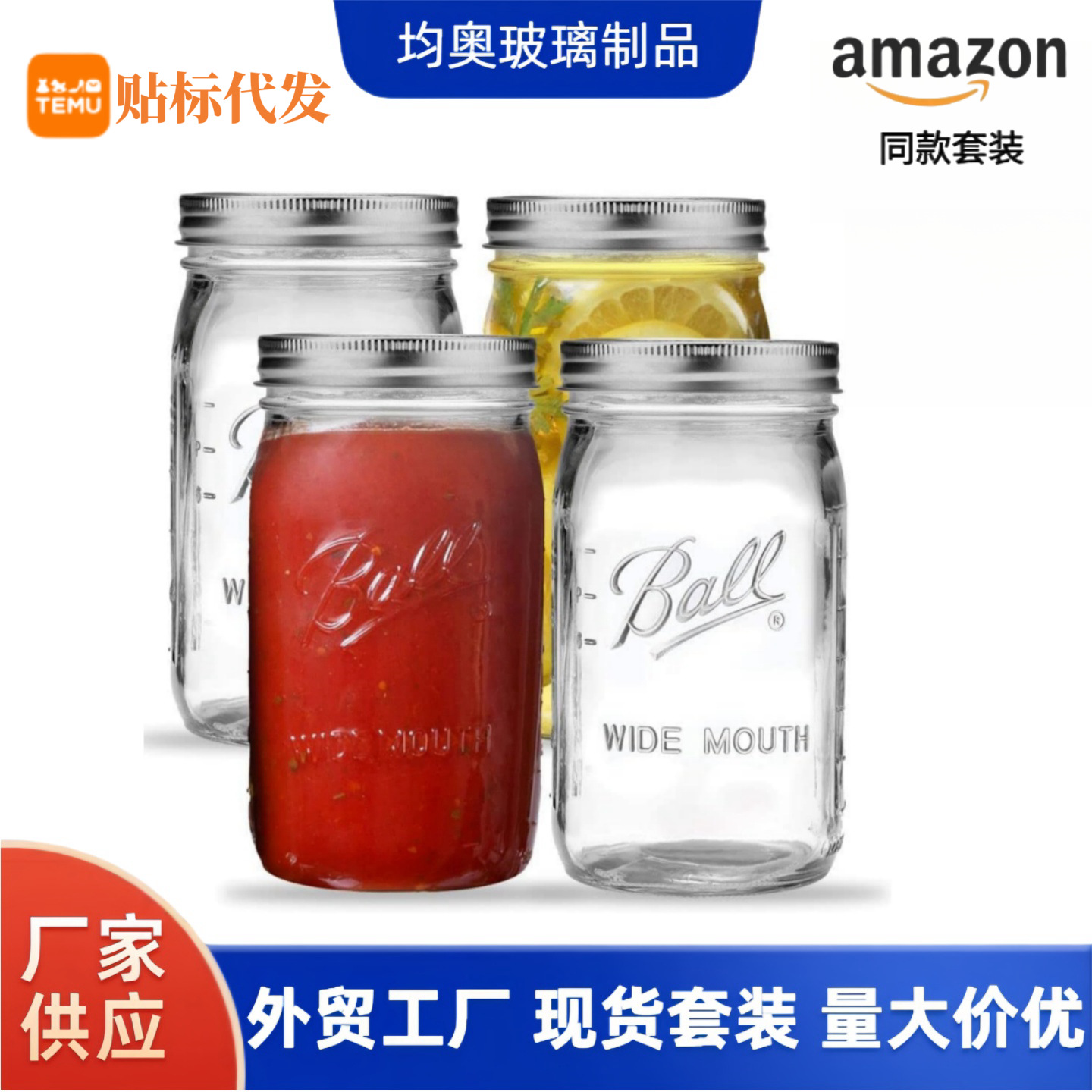 アマゾン】アメリカメイソン1000ml缶シールガラス缶食品級空瓶漬け物蜂蜜缶漬け瓶
