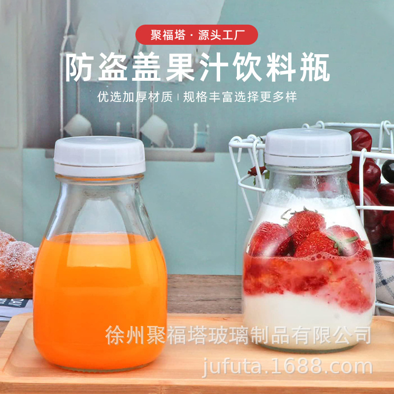 300ml500ml果汁饮料瓶带防盗盖透明玻璃瓶咖啡瓶牛奶瓶厂家直供