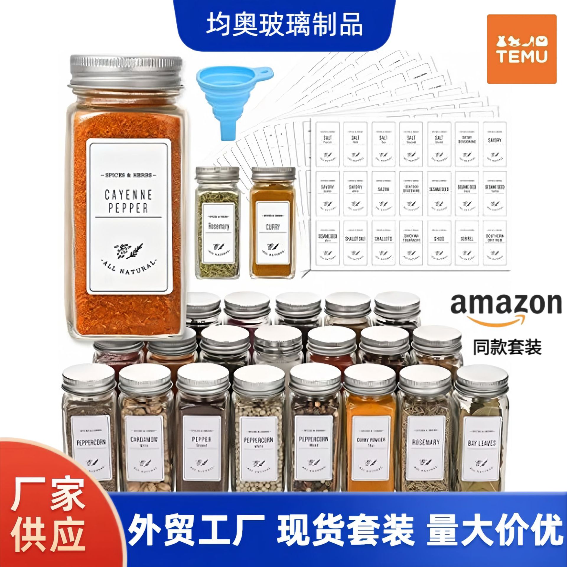 対外貿易金ガラス調味料瓶セットキッチン竹アカシア木アルミ蓋胡椒粉調味料瓶散布缶