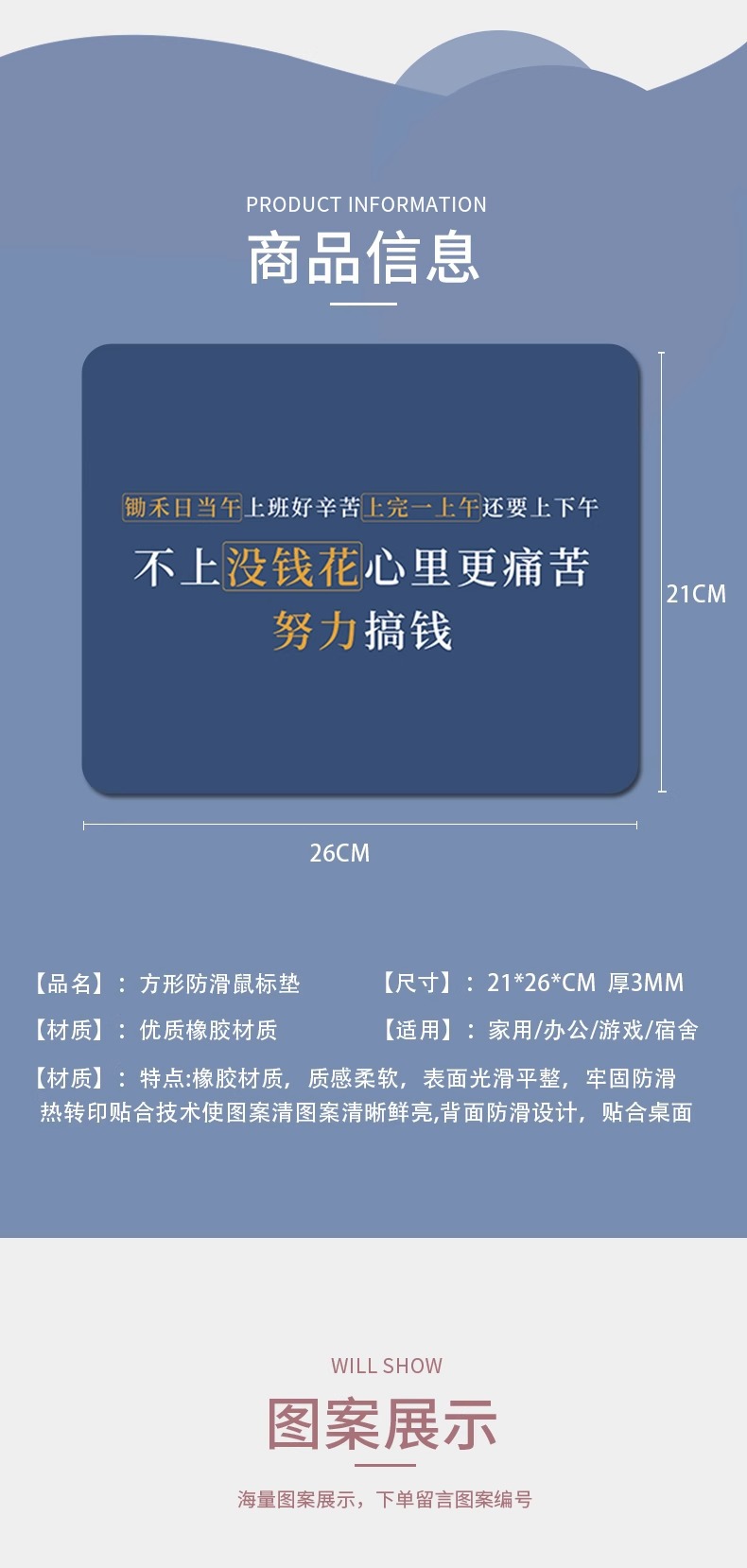 励ましの志の文学のマウスのマットの小さいサイズは手首のins風の滑り止めの耐摩耗性のクッションを保護します。