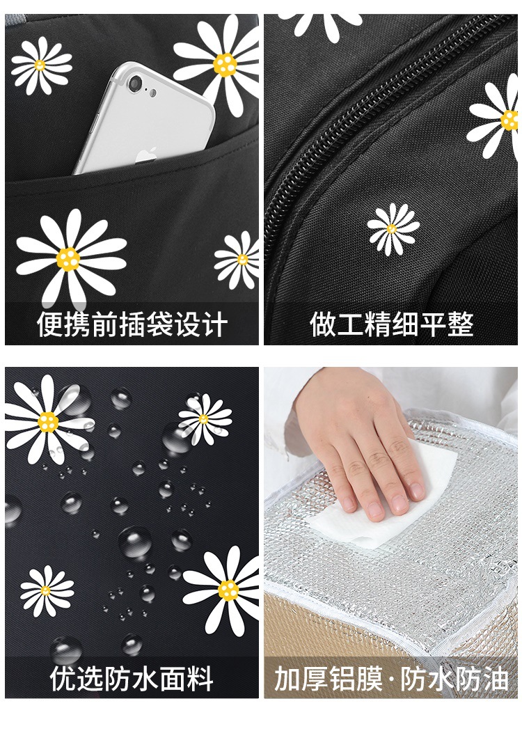 和風デイジー柄ランチバッグ 保温バッグ サラリーマン 学生 弁当袋 ランチバッグ 収納バッグ 保冷バッグ