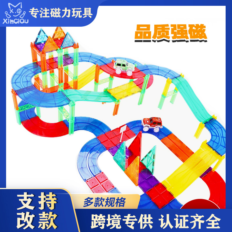 源強磁石軌道磁力片車益智大磁気条ドリル面彩窓磁力積み木磁力片軌道