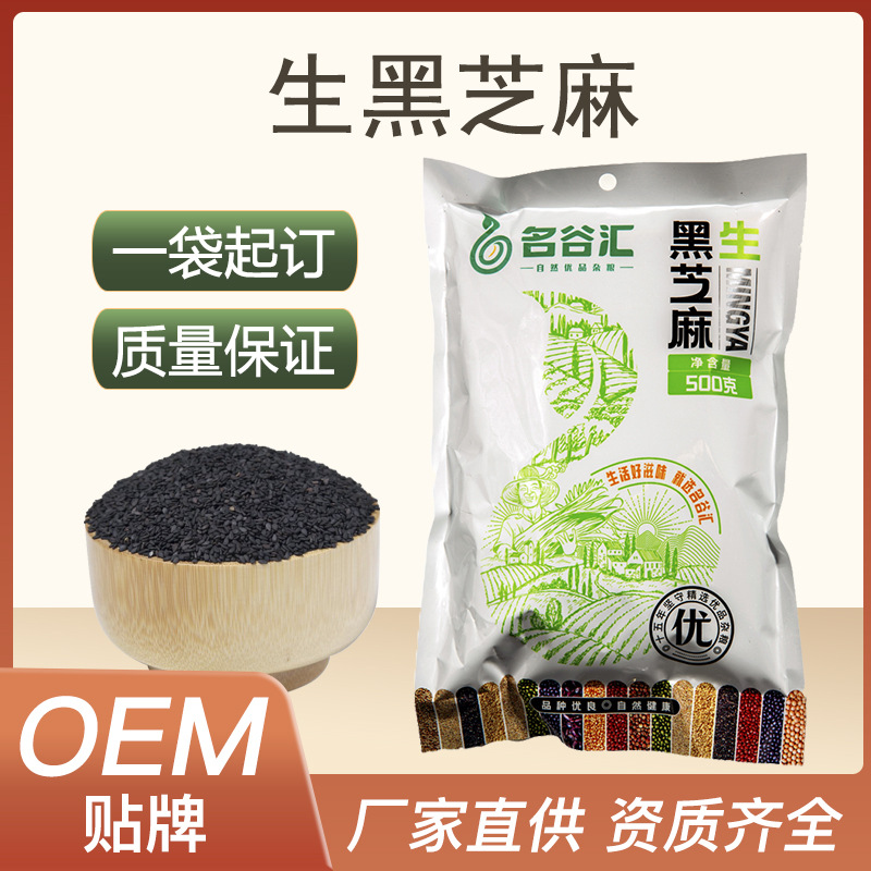 新鮮な黒ごま、無染色、無添加、選別済み、工場卸売、500g袋入り、油麻