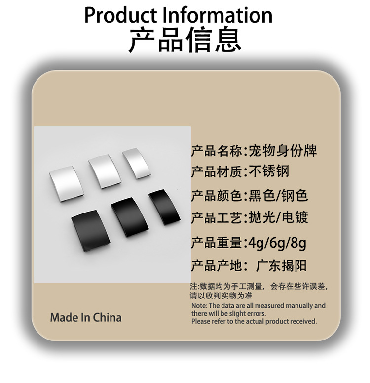 越境ペット用品シリカゲルステンレス金属迷子防止レーザー身分札チタン鋼首輪猫牌犬牌