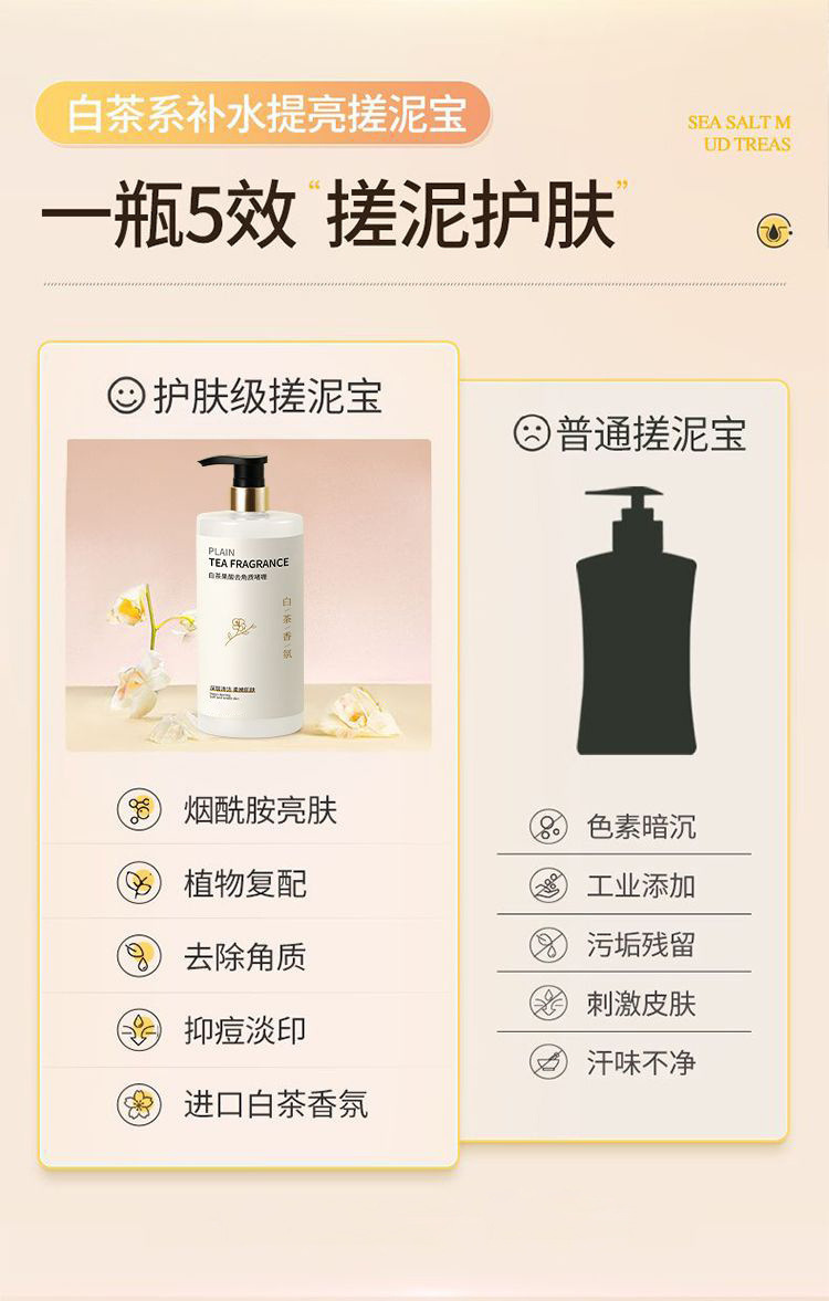 白茶花去角质啫喱膏面部深层清洁去死皮搓澡泥宝膏男女全身通用