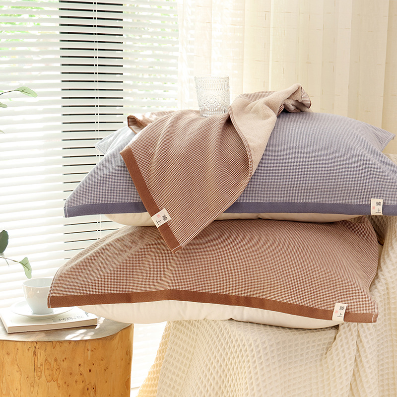 純綿ワッフル枕カバー、純綿家庭用ペア、頭油防止、男の子用ガーゼ吸汗性枕カバー