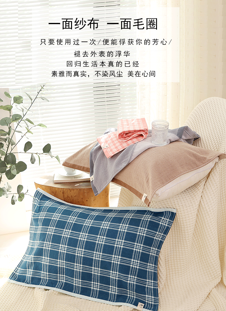 a类泡芙纱布枕巾纯棉一对装家用成人加厚全棉高档枕头盖巾防头油
