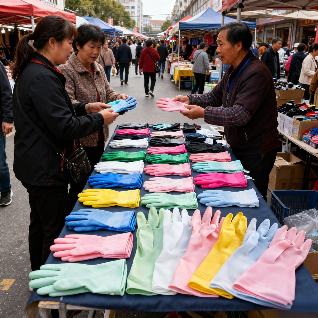 江湖の屋台で販売されているプラスチック製の手袋、10元で3双、PVC製の家庭用キッチン用厚手の掃除用手袋、食器洗い用手袋