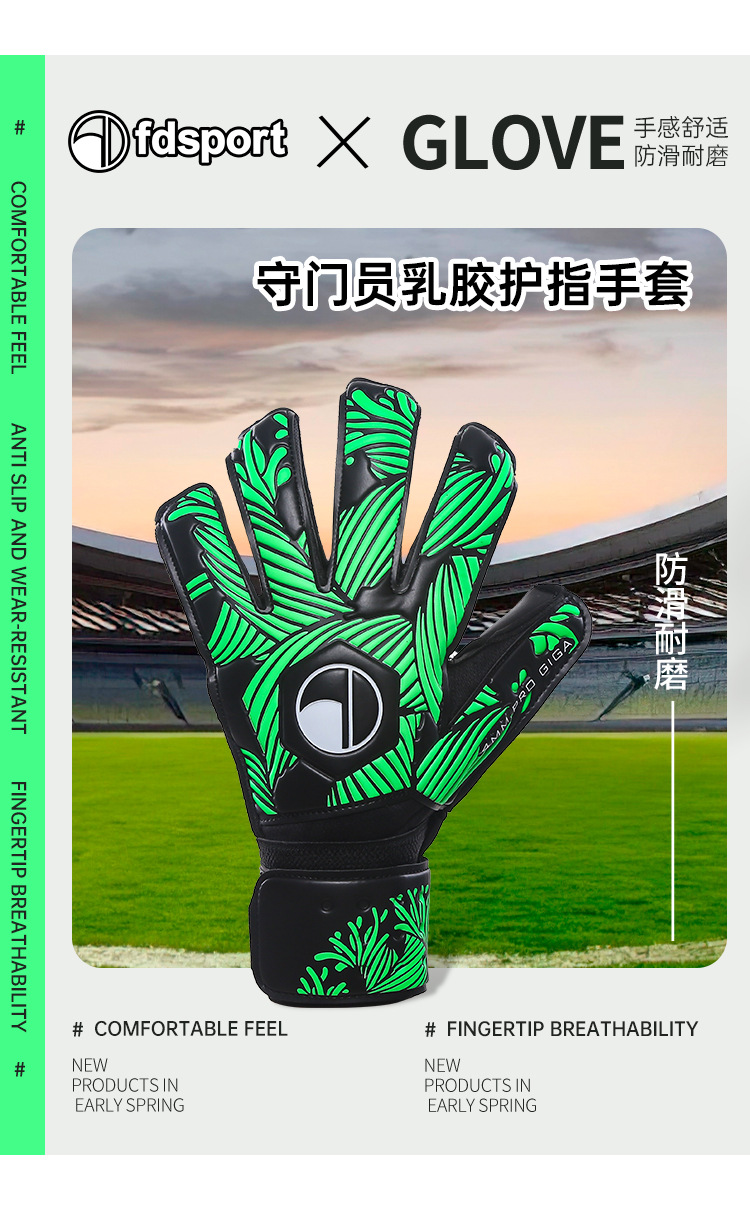 FDSPORT プロサッカーゴールキーパーグローブ ラテックスフィンガープロテクター 滑り止め 子供と大人のトレーニングと試合用