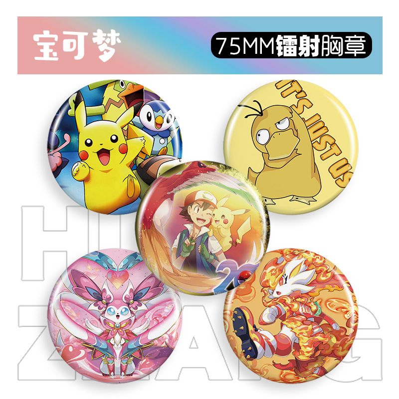 镭射胸章宝可梦则58-75mm动漫徽章卡通胸针吧唧谷子