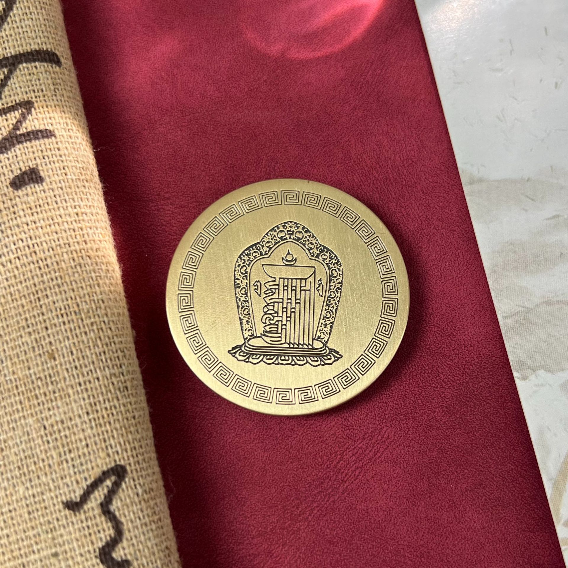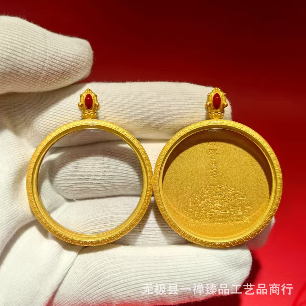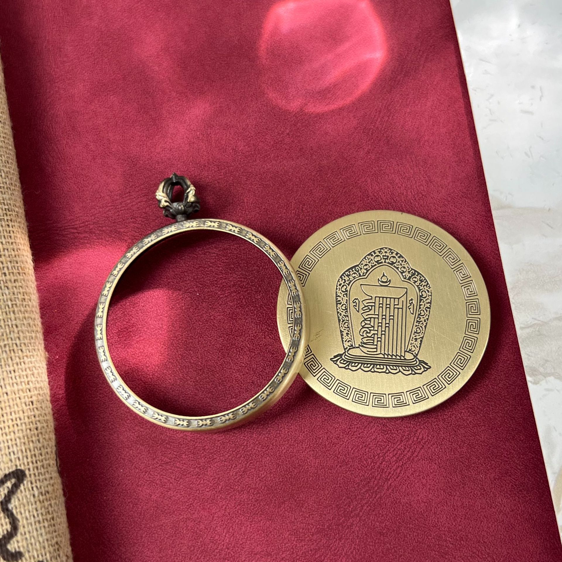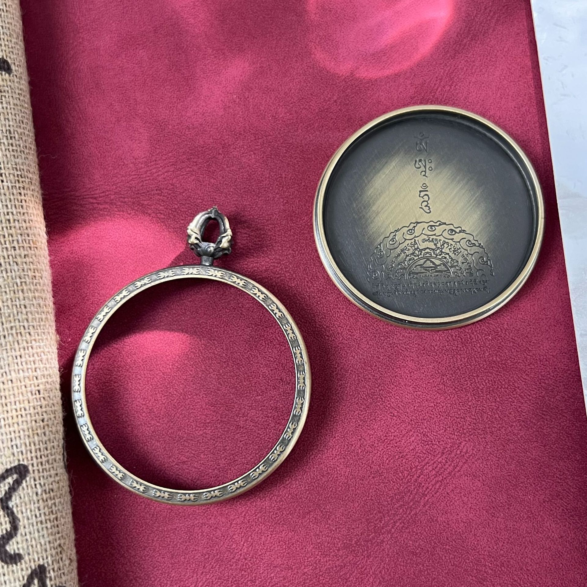 美沙唐卡片面マット加工ガウボックス記念フレーム丸型銅製ペンダントチベット式十相自在吊り下げネックレス