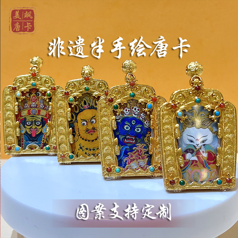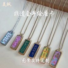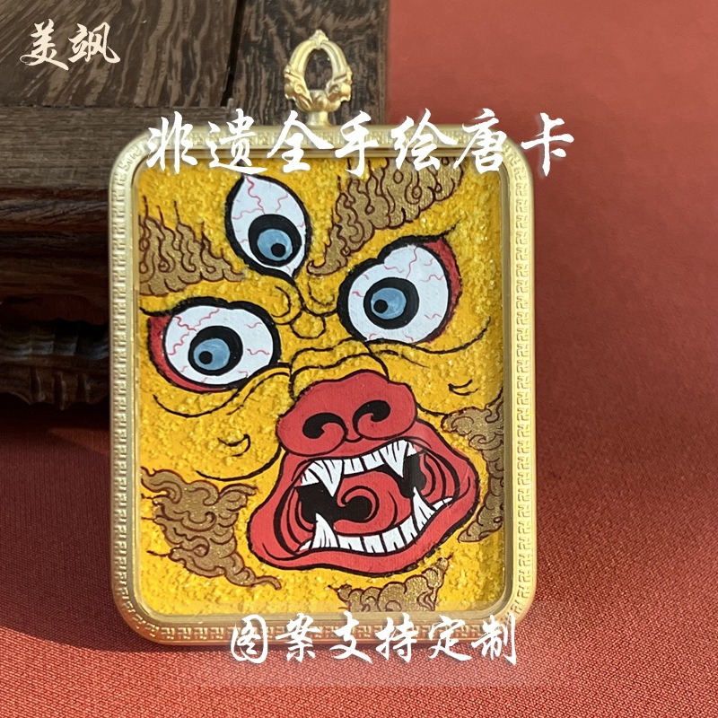 美颯唐カード半手描き古法ペンダント五条経文模様民族風手描き唐カード現物卸売り