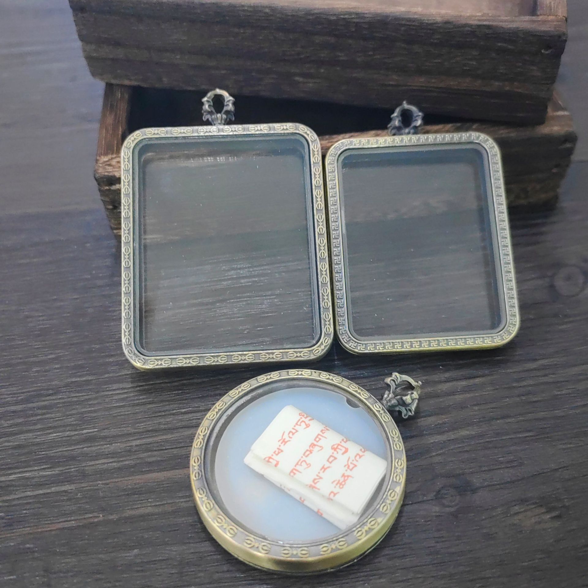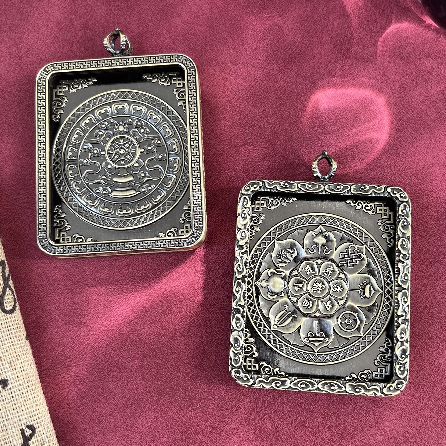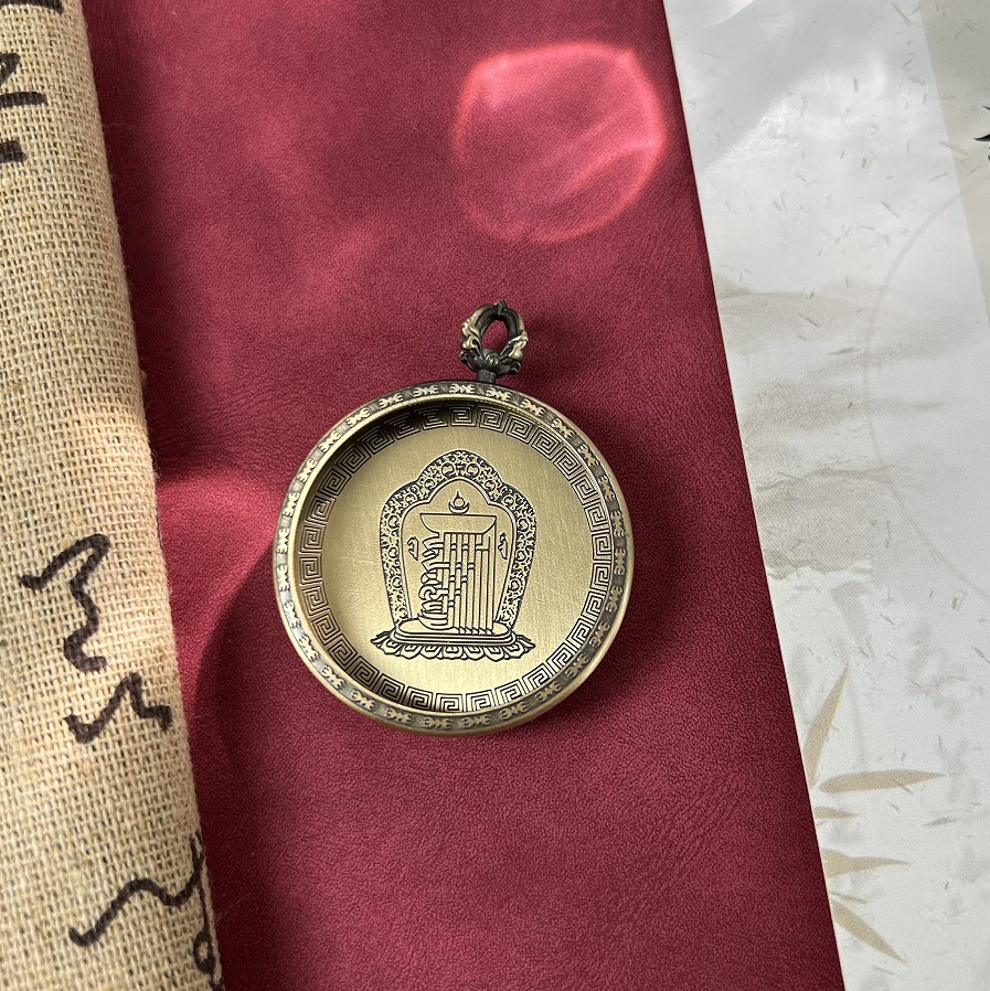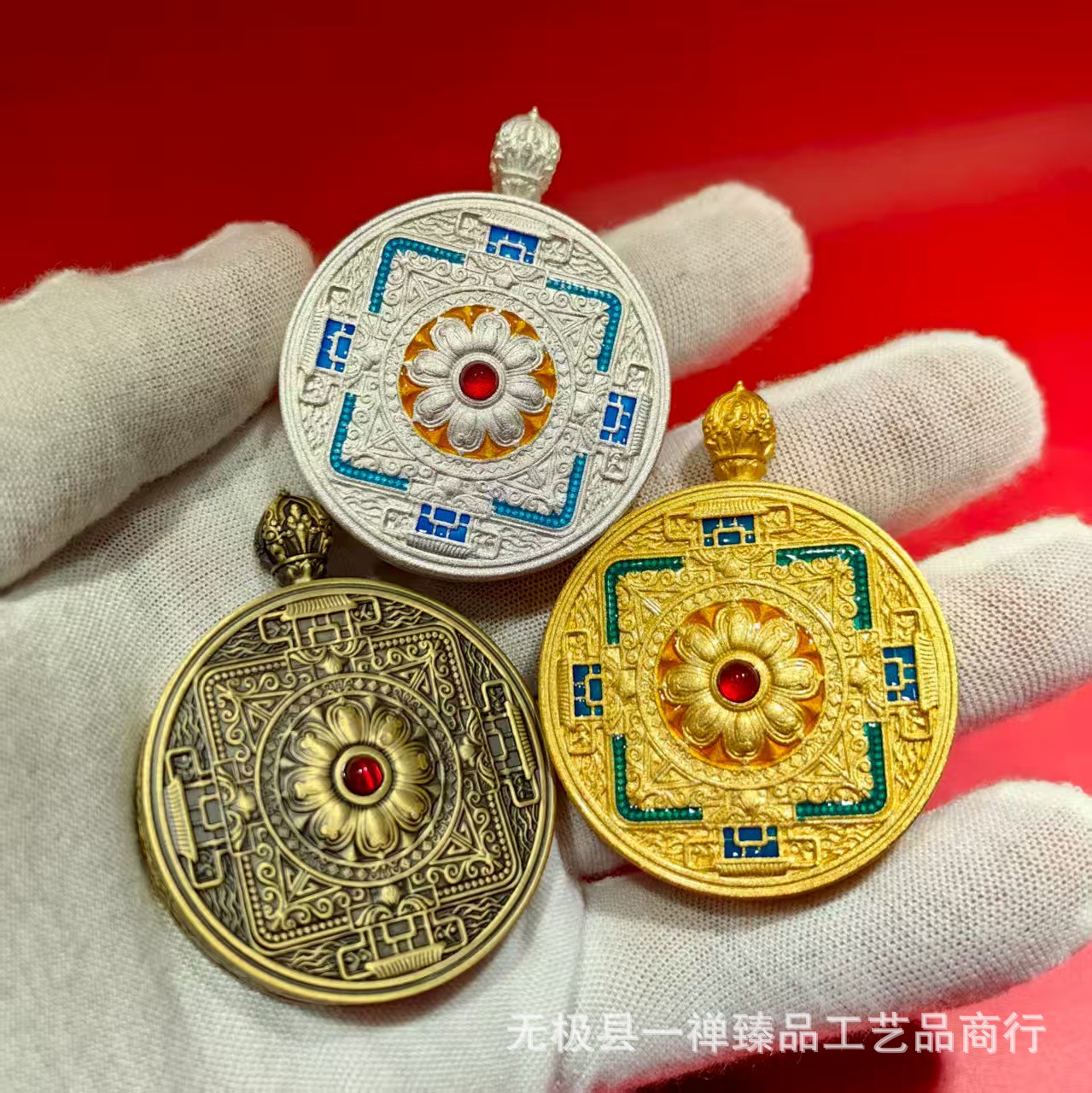 新款坛城窗口3.5玻璃唐卡嘎乌盒吊坠单面纯铜噶乌盒手绘专用批发
