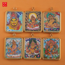 新款八方来财半手绘描金唐卡吊坠黄铜镶锆石佛牌朱砂项链嘎乌盒子