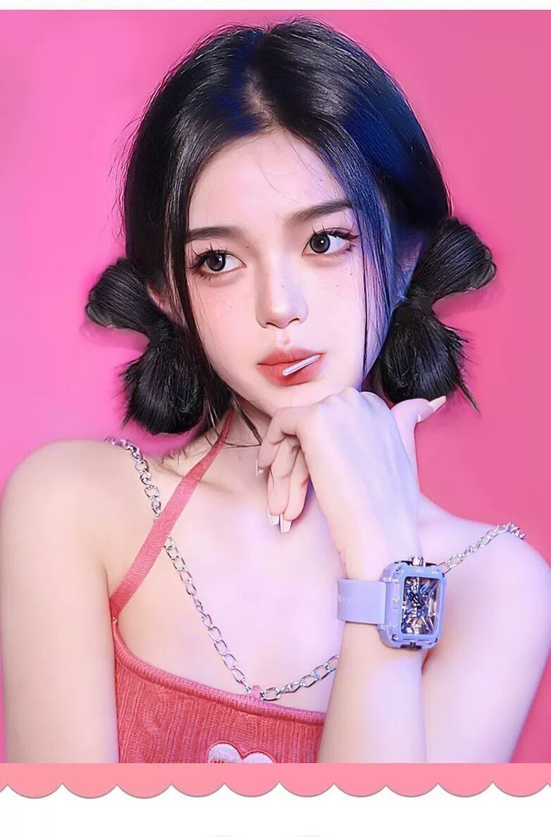 韓国系半団子のかつらはストレートでつぼみを包んでいます。