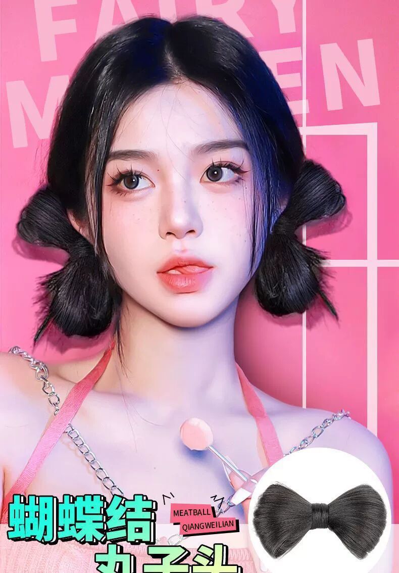 蝶結びウィッグ、ふわふわミートボールヘアクリップ、女性後頭部ヘアクリップ、ヘアピン、一体型カモノハシクリップ